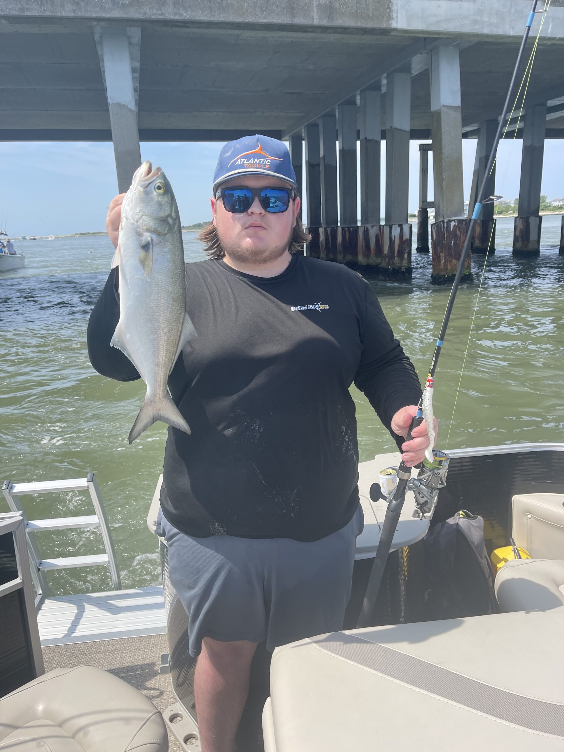 Dan Tobin fished the route 50 bridge today with Roy Rigs and his Deadly Tackle spinning rod and landed some nice snapper sized bluefish.