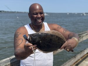 Captain Jason Mumford of Lucky Break Charters had a crazy good day of floundering in the south bay today putting several keepers in the boat over a couple of trips. Captain Jason also reported “a lot” of throwback sized fish.