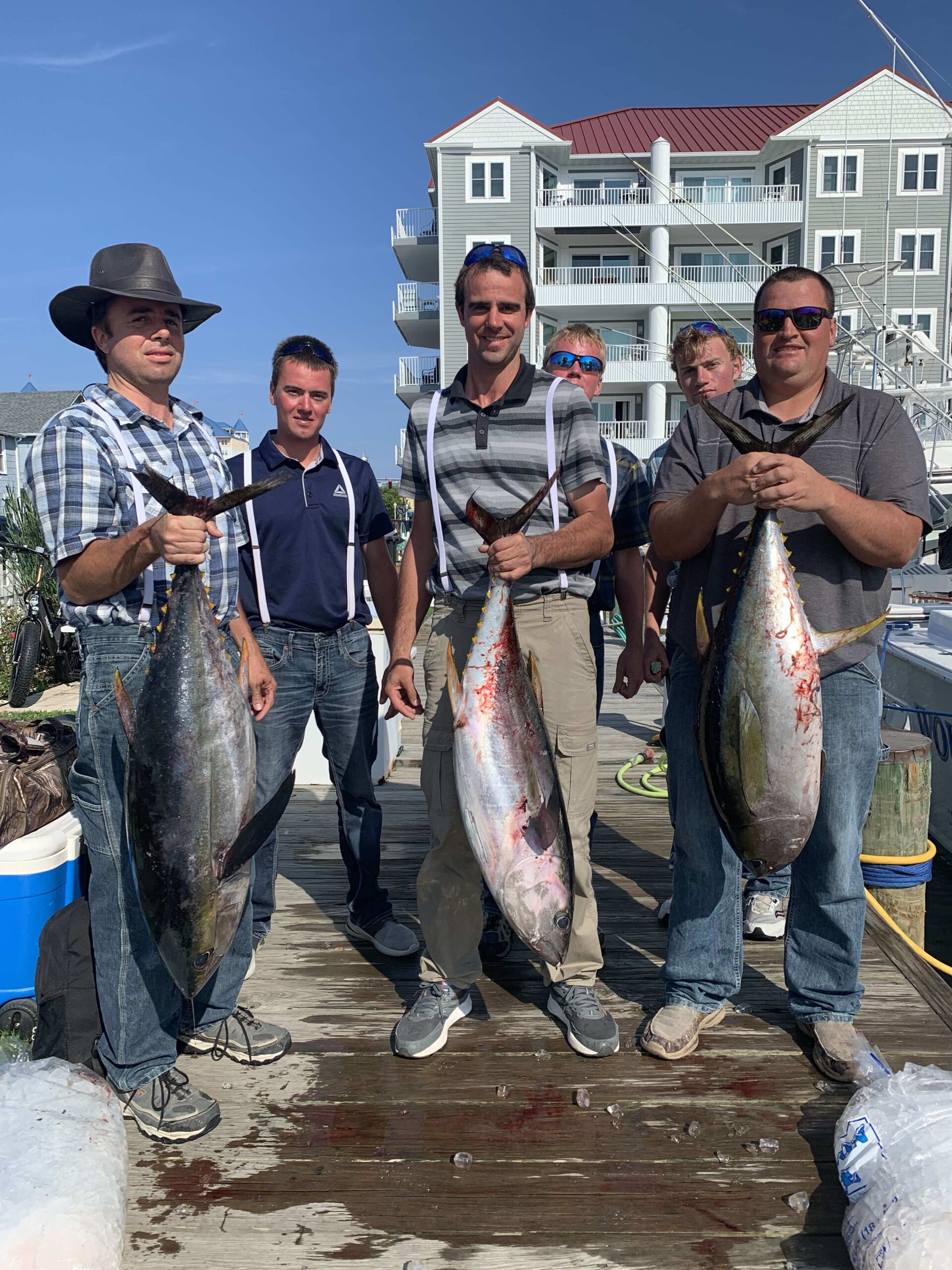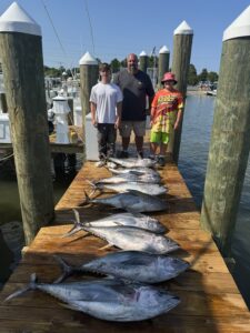 Captain Andy Butler was running Split Bill Charters today and he found his anglers some meat. It was “nonstop” in the Washington Canyon with a lineup of nice yellowfin tuna.