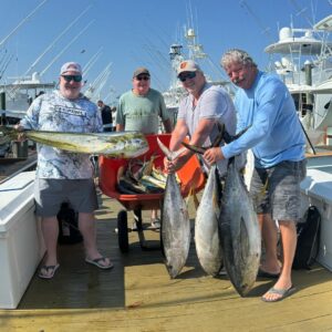 The crew of the Boss Hogg had a good day today with three nice yellowfin tuna and a big mahi.