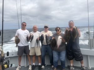 Captain Chris Mizurak of the Angler reported rough seas today, but was still able to put some anglers on some nice flounder and sea bass for dinner.
