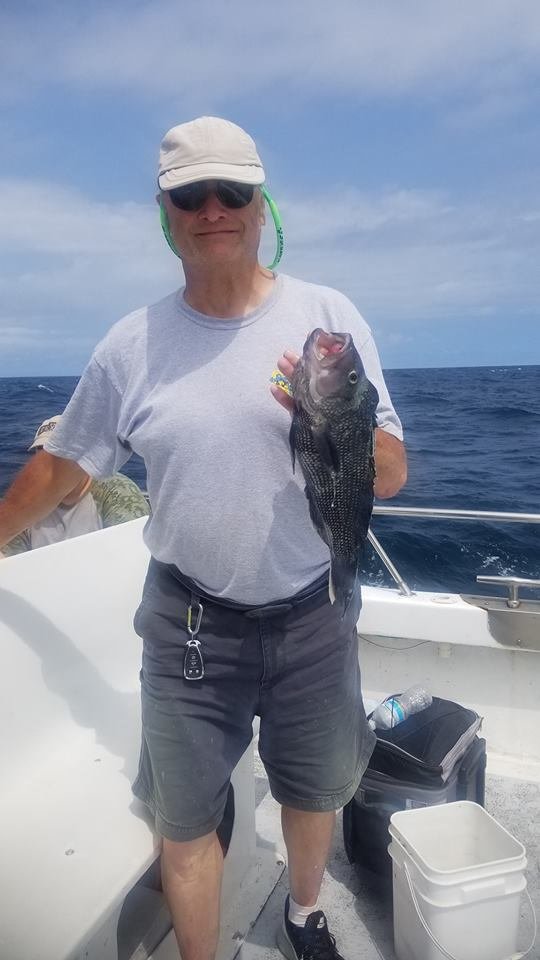 Barb & Randy Roehl of OC, MD (18.5 in sea bass) – Dan & Fred Krupansky Of PA are pictured with some of today’s other action.