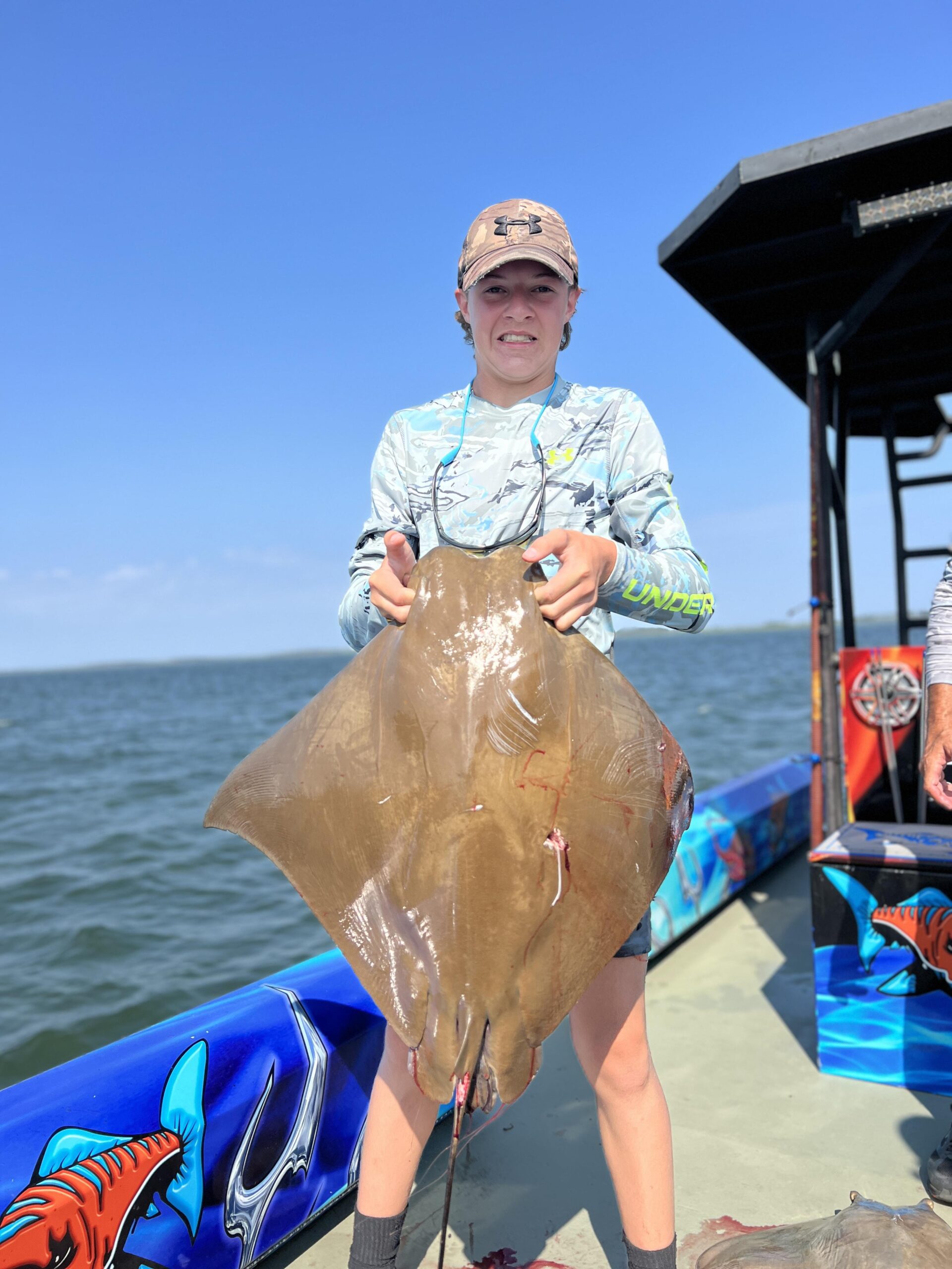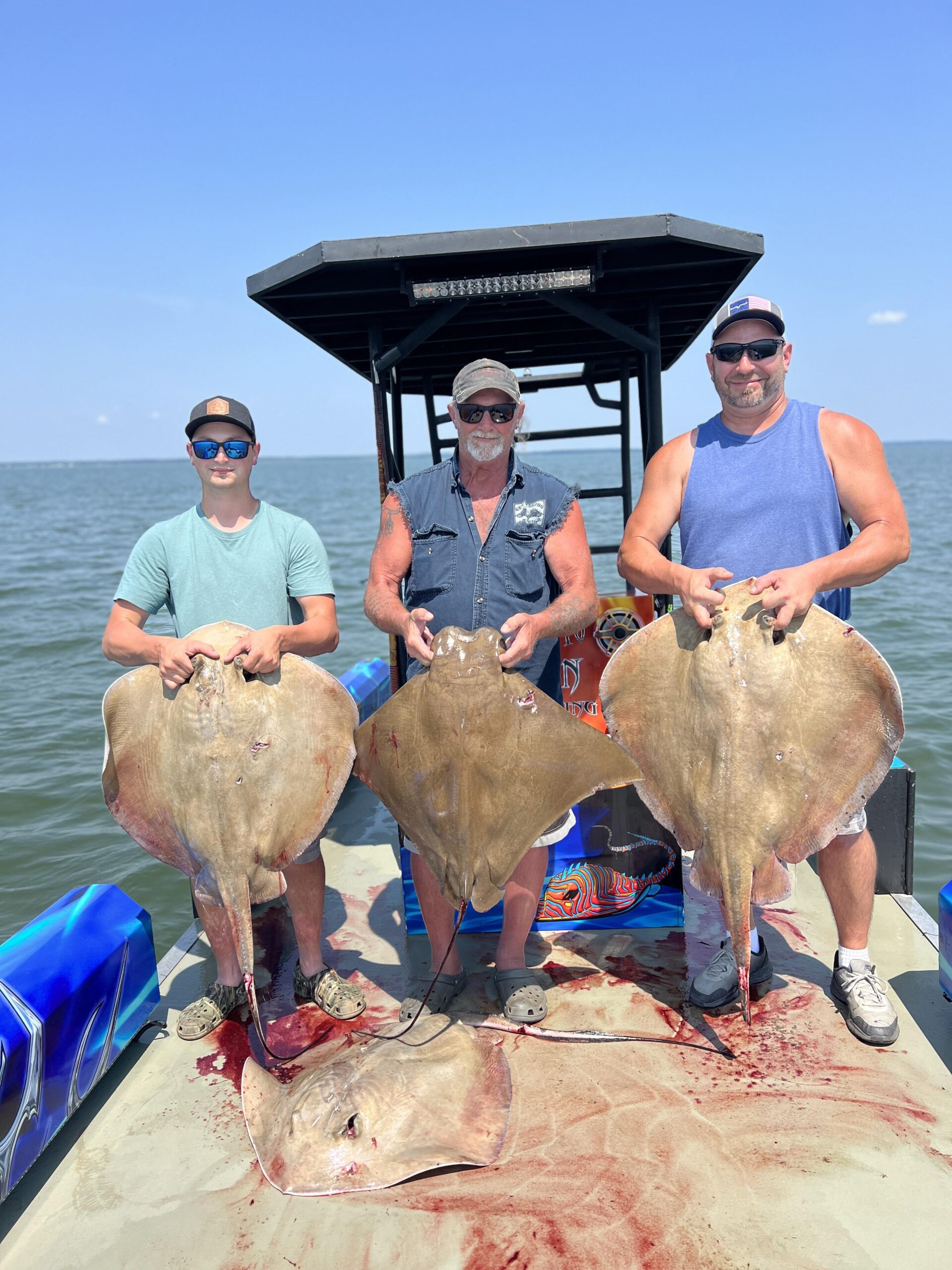 Away from the tournament, Captain Marc Spagnola of Dusk to Dawn Bowfishing put his crew on some good shooting for cow nosed and southern rays in the south bay.