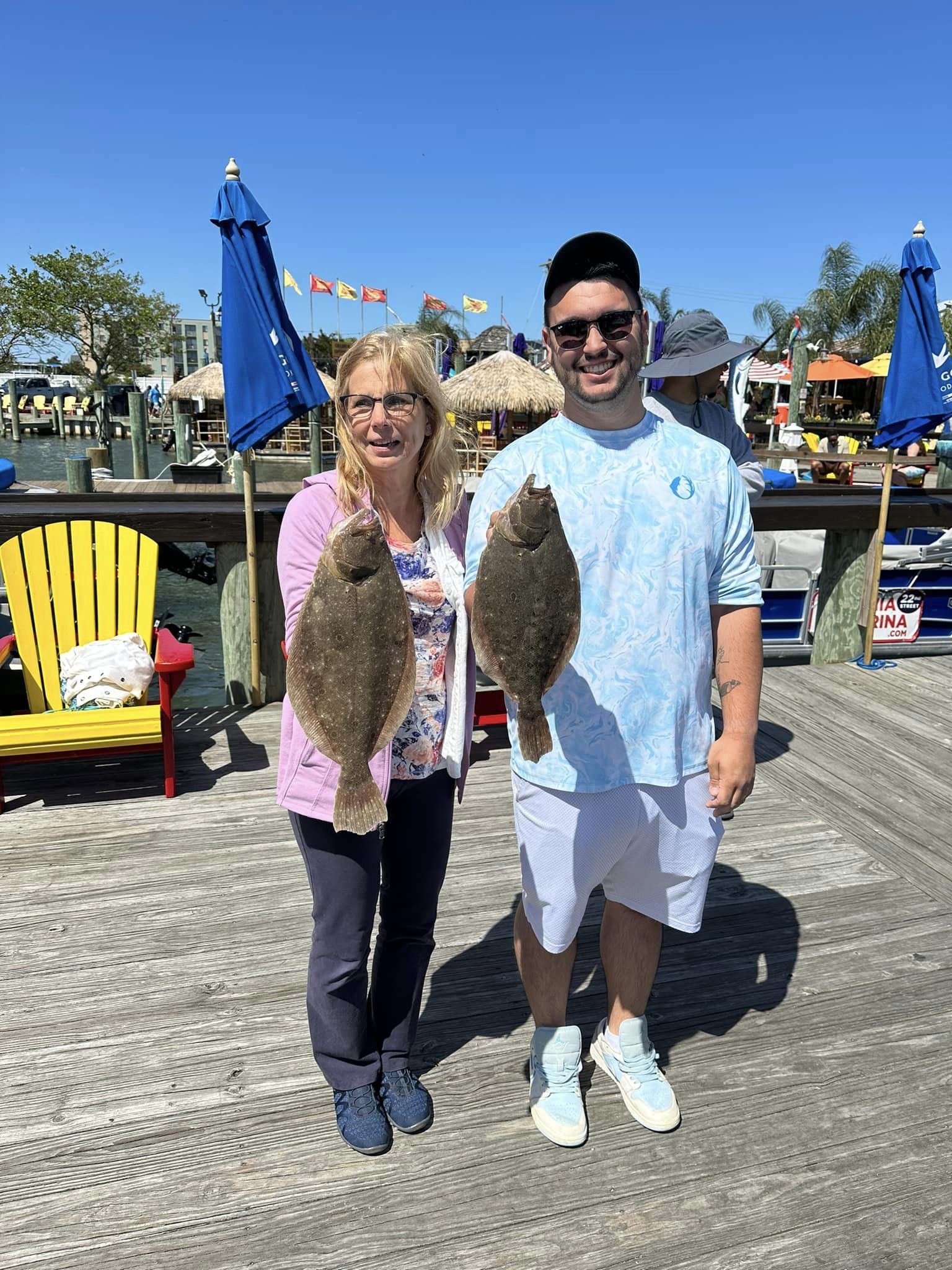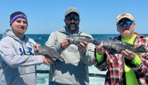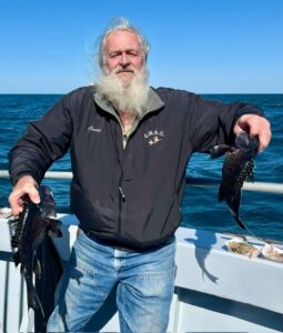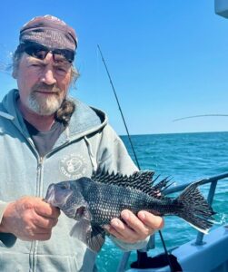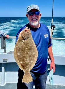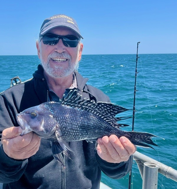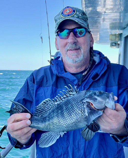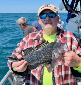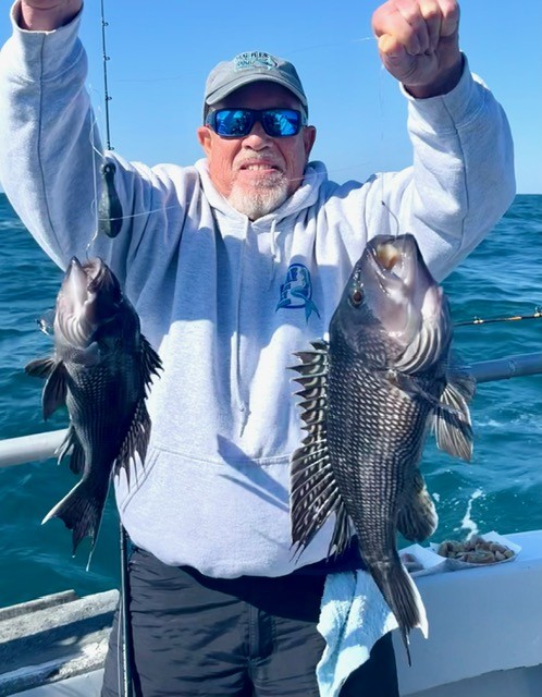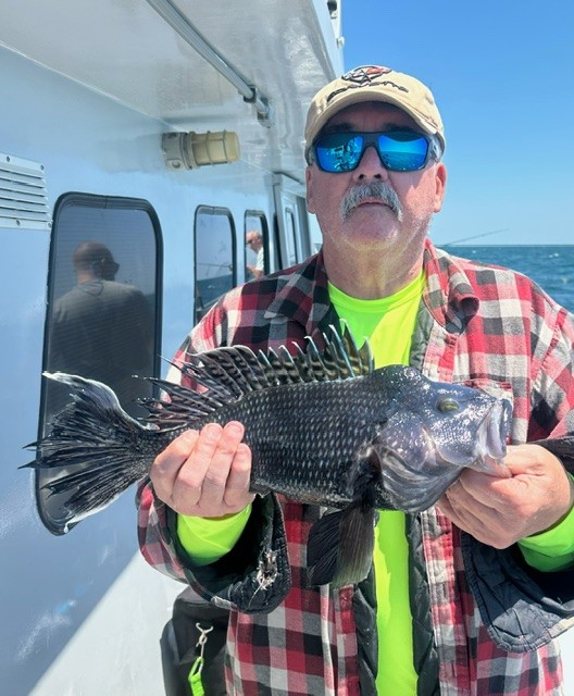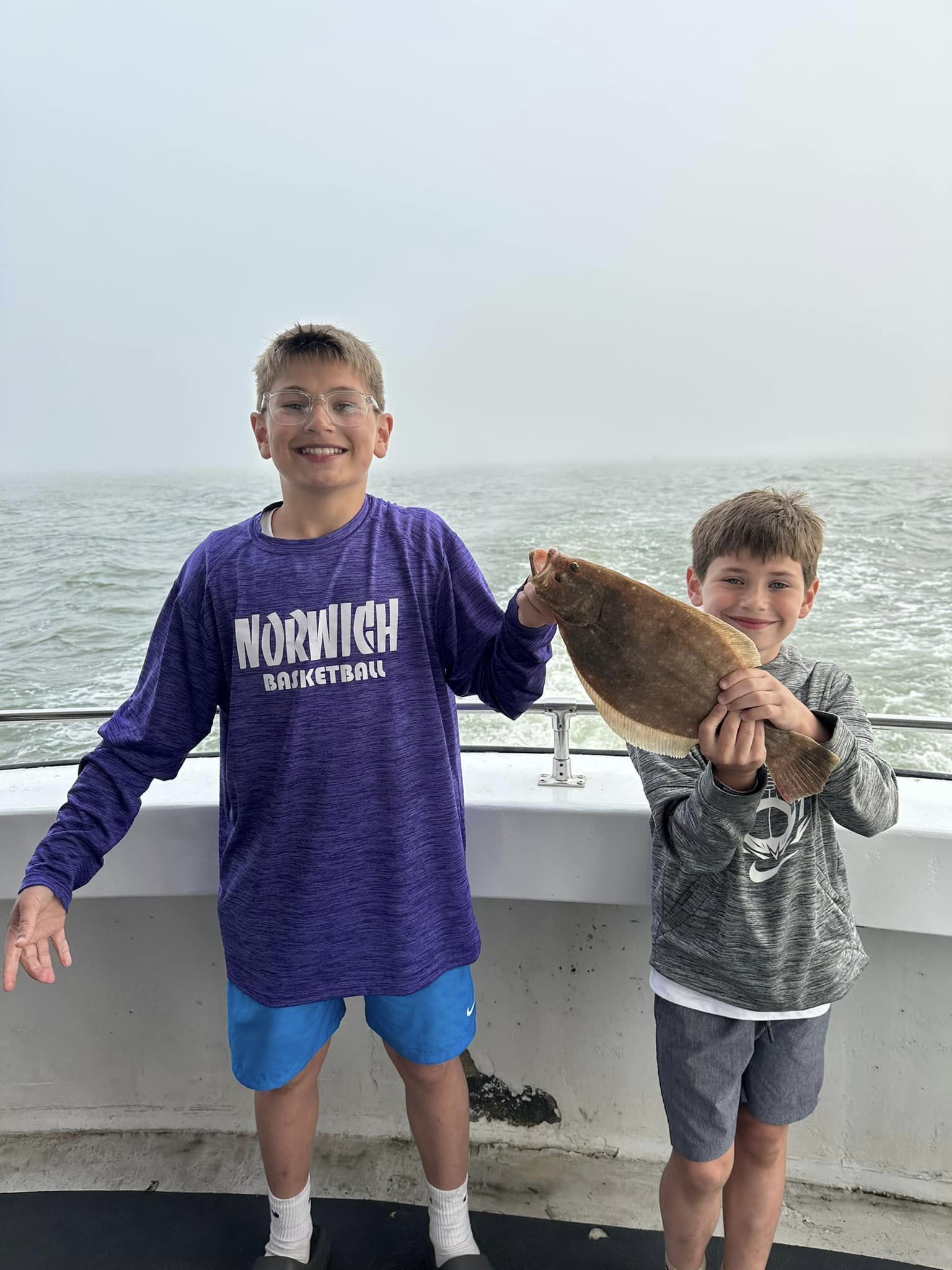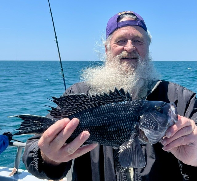 Captain Monty Hawkins of the Morning Star reported “saucy” seas today, but he managed some sea bass and a couple of flounder for his folks.
