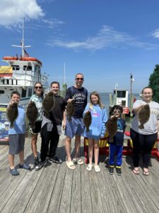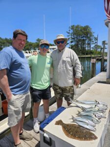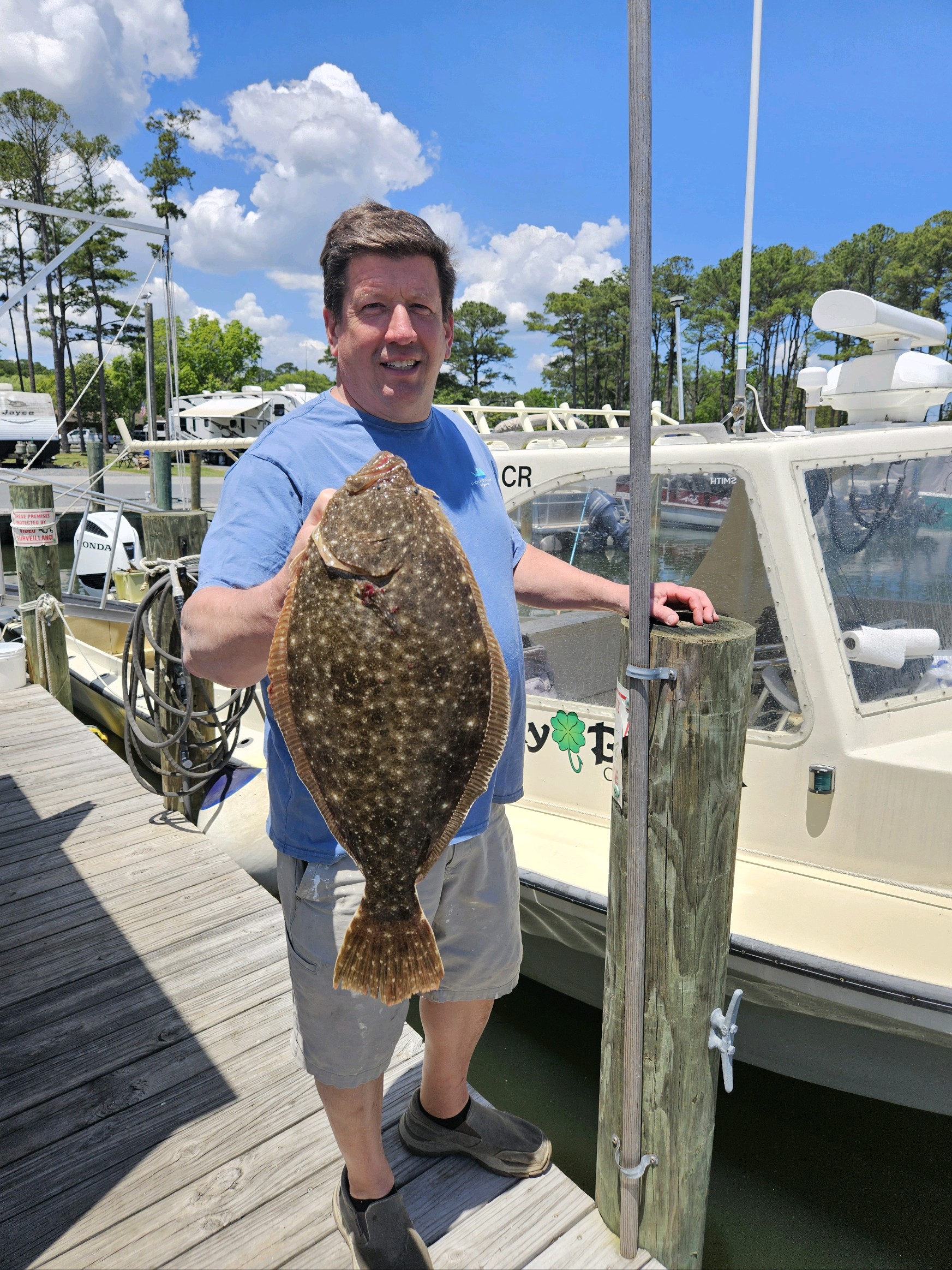Captain Jason Mumford of Lucky Break had MD Delegate Wayne Hartman and his crew on board today and showed them a good day of fishing. Wayne had a nice 21″ keeper flounder and the crew added a pile of bluefish.