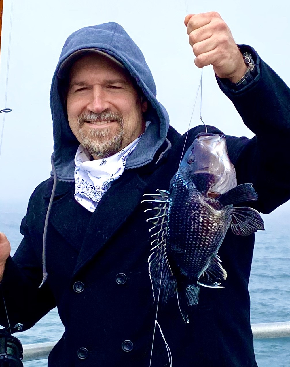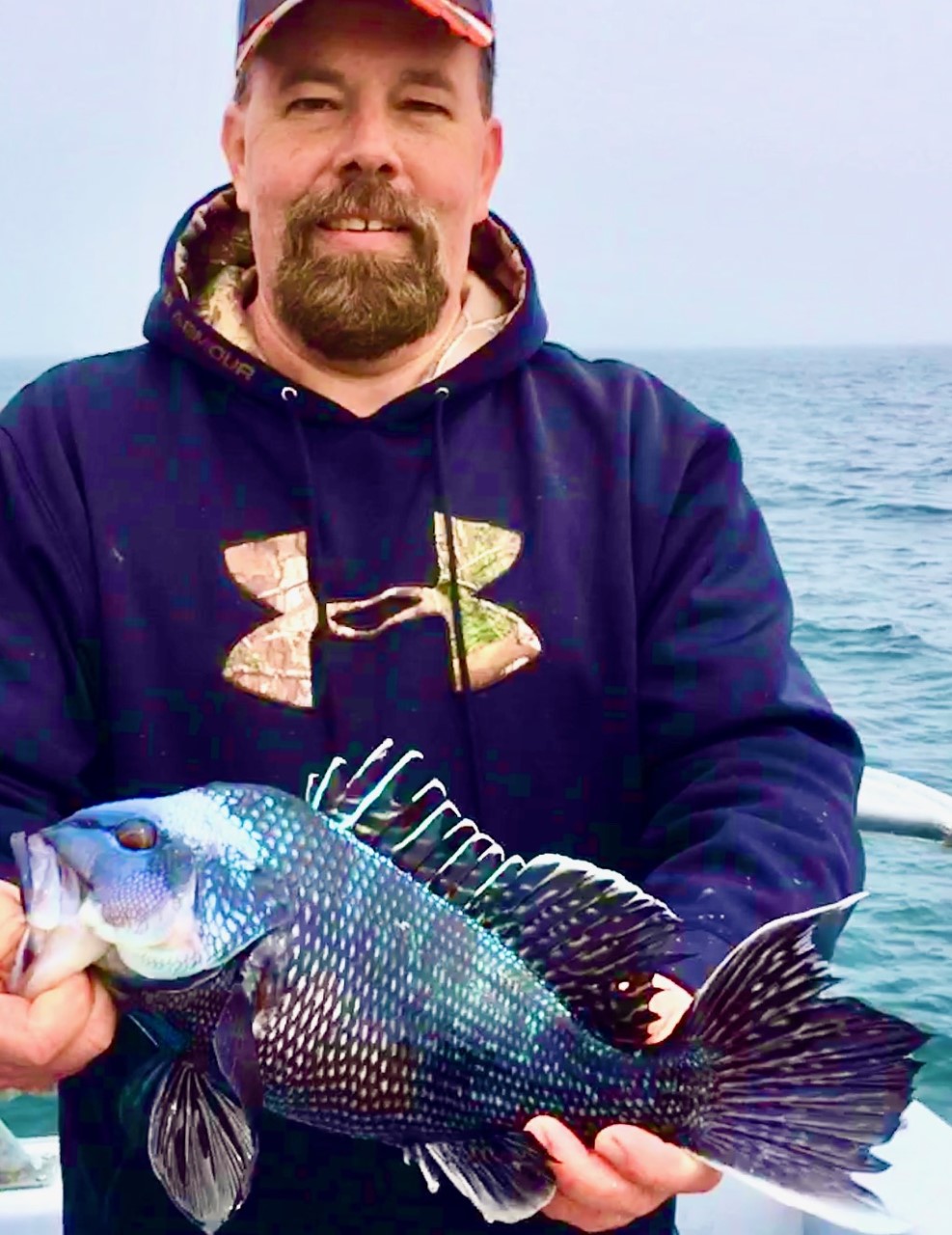 Todd Scorah of Millsboro DE shows off a fully lit up male sea bass.