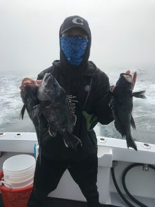 Dogone weather’s unrelenting. Today’s seas were plenty fishable—a pleasant surprise given three days of NE wind; a cold, wet fog, however, kept us reminded of the world’s present state of affairs.