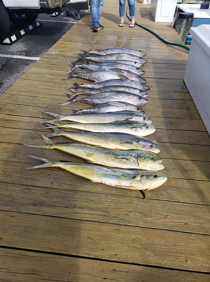 Offshore fishing was good for another day with some nice tuna and mahi coming back to the dock. The Talkin’ Trash with Captain Chris Little had nine yellowfin tuna and some gaffer mahi on today’s trip.