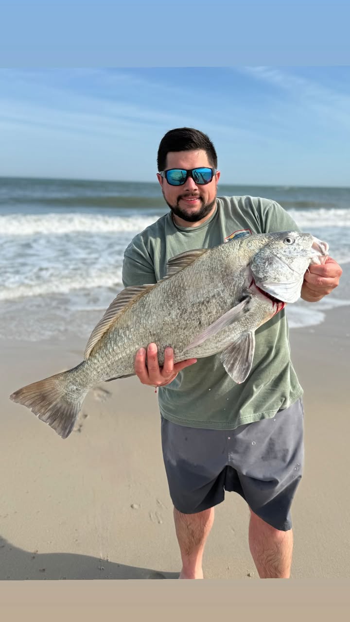 Ryan Ellerman from R.E. Appraisal Service caught and released this nice 32″ black drum in the Assateague surf.