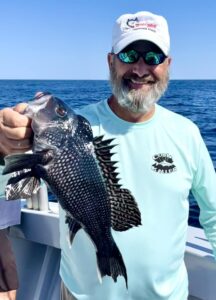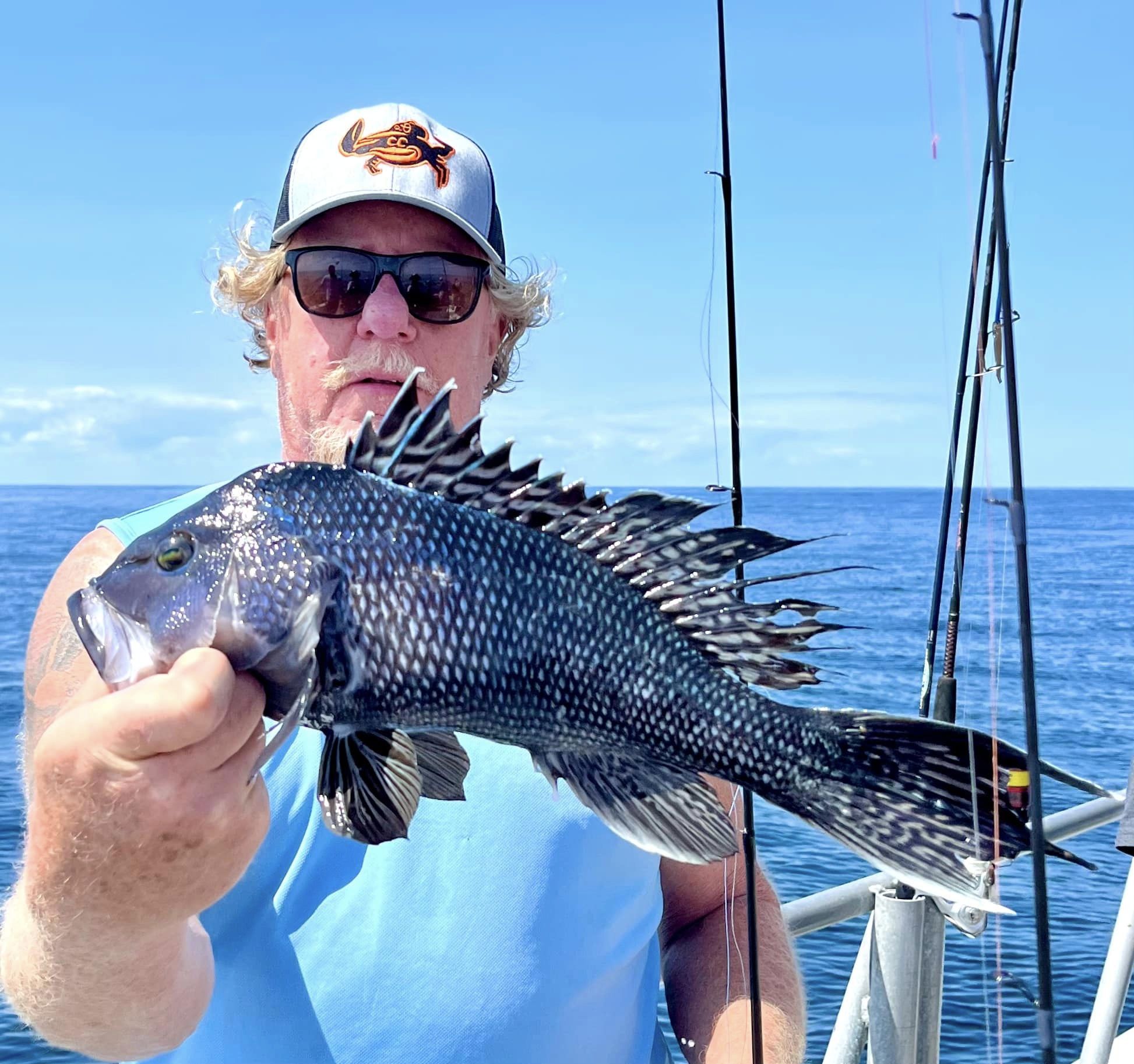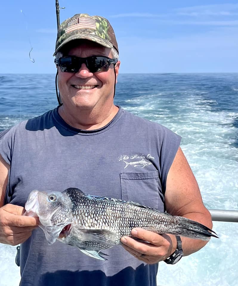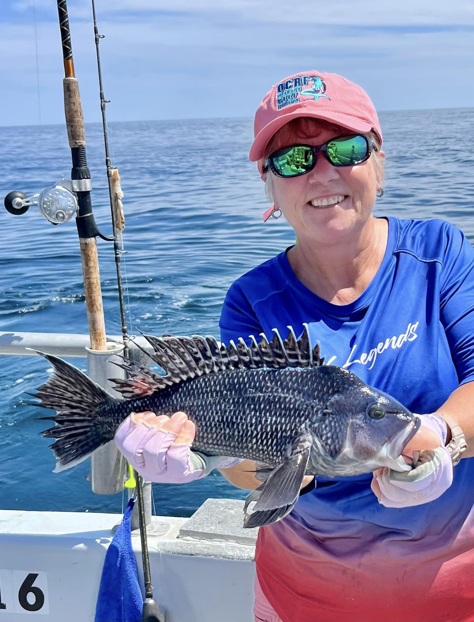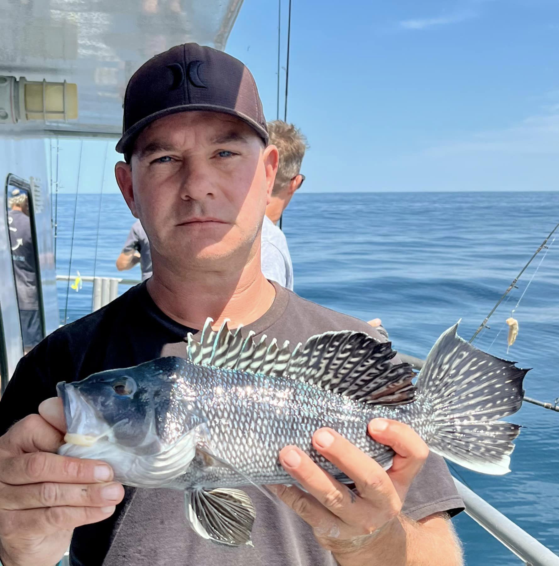 High man was Ken with seven nice sea bass. But counting the Keeper Queen? Oh no. High man was a lady. Ms Holly had nine.