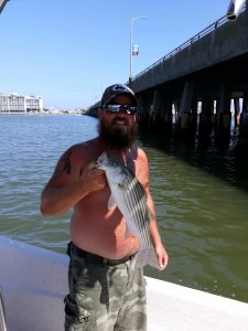 Scott Mangus of Roanoke VA was high hook for the day with 10 keeper sea bass, he also took everyone’s pool money with his 18 incher.