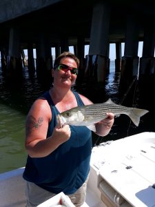 Captain Wayne Blanks of Bayside Guide Service fished the outgoing tide at the route 50 bridge today and put his anglers on about 20 rockfish releases in about an hour and a half.