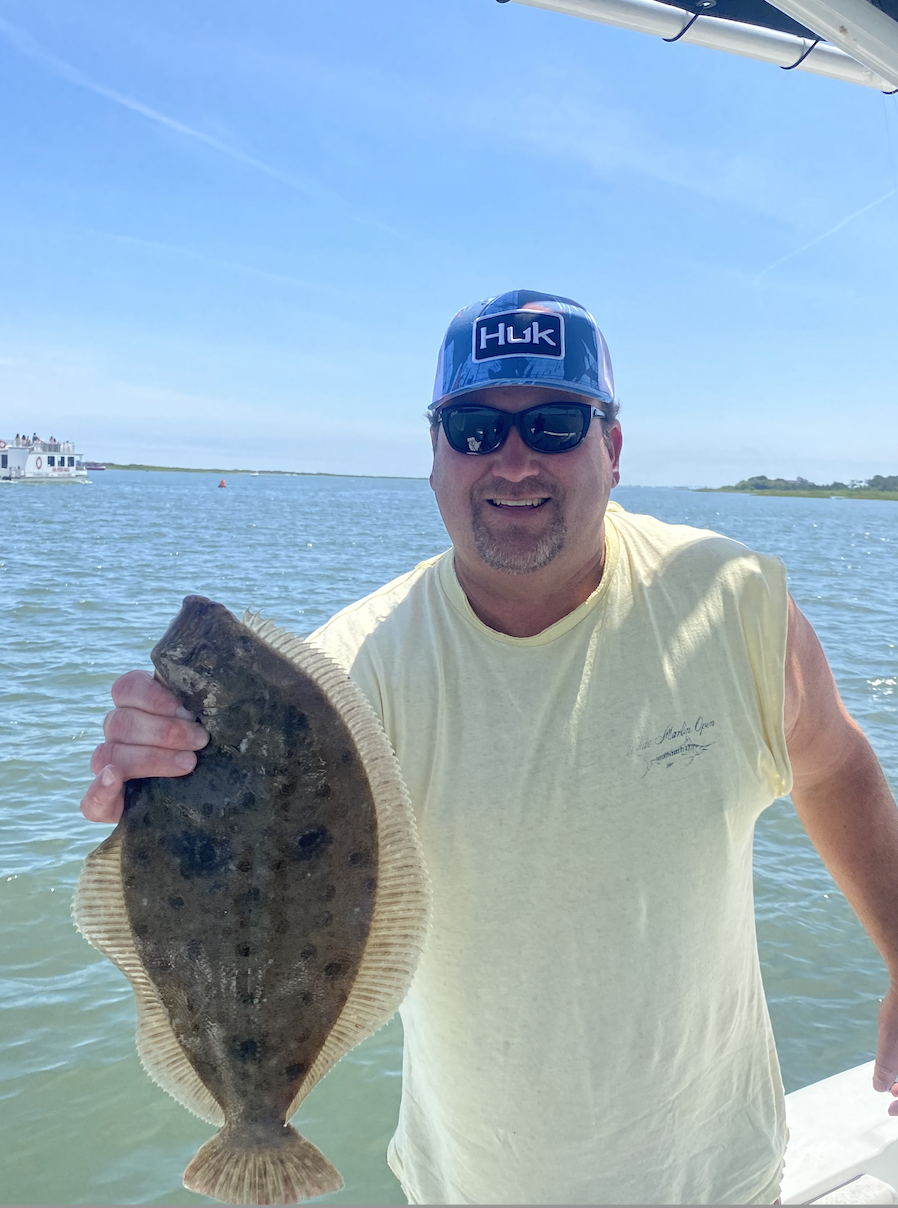 Dave Neumeyer released a bunch of small flounder and found this 17.5″ keeper behind Assateague when it fell for a pink Deadly Double.