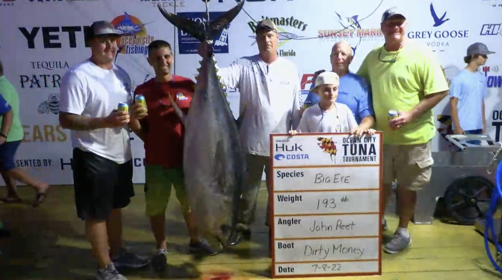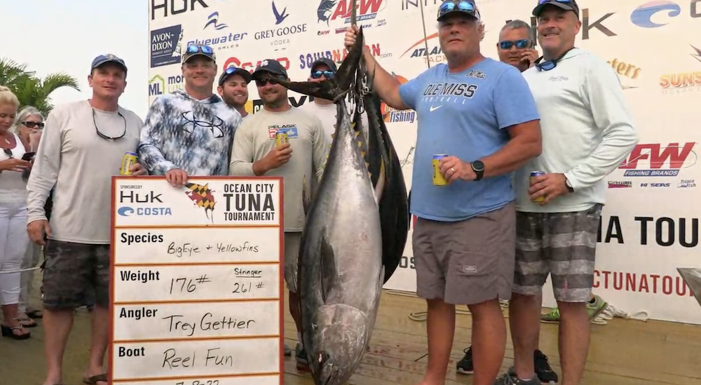 I just got back from day 1 scales action for the 35th Annual Ocean City Tuna Tournament at the Ocean City Fishing Center and it was as busy as I thought it would be. 108 of the 109 boats fished and nothing was on the board so we had a feeling it was going to be a crazy busy day. There were several stringer fish weighed at Sunset Marina, but the big fish hit the scale at the Ocean City Fishing Center! Tomorrow looks like another very heavily fished day so it will probably be another busy day at the scales. I’ll see you there. Here’s who’s leading what after one day of fishing.