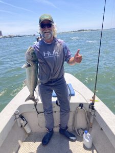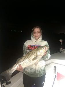 Captain Wayne Blanks of Bayside Guide Service had a nice night of fishing when he put this angler on a fat 32″ keeper rockfish. They also released several other fish on the trip.