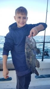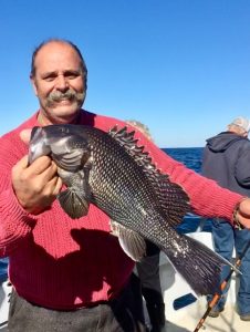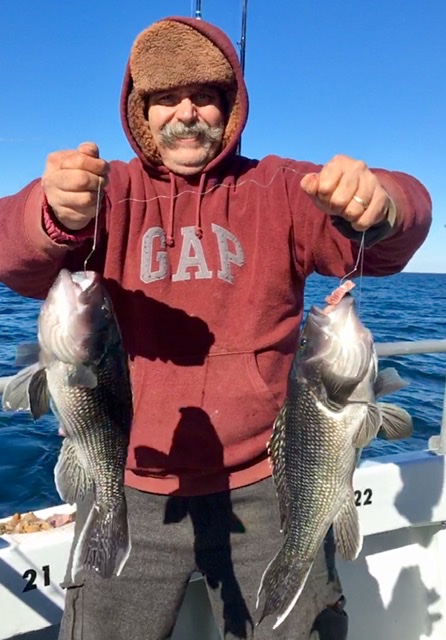 Captain Monty Hawkins of the Morning Star was able to get where he wanted to go today and found drop and reel sea bass fishing again.