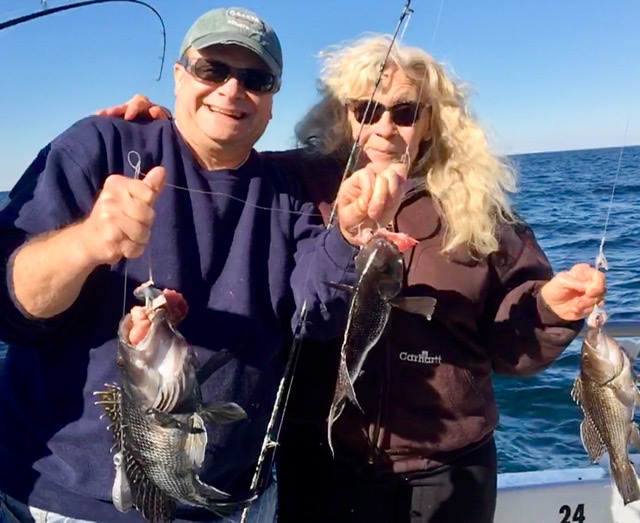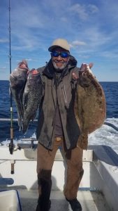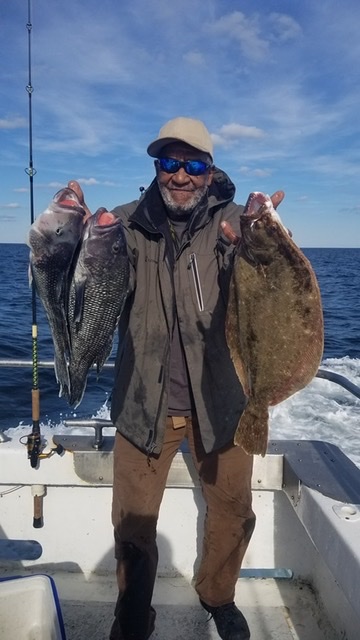 Captain Chris Mizurak of the Angler had to make two stops to limit his customers out today. Capatain Chris saw a nice catch with sea bass up to 3.5 pounds and flounder up to 4.5 pounds.