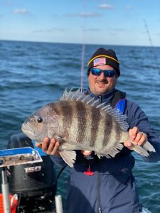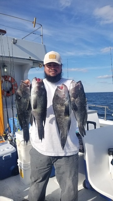Captain Chase Eberle and his crew on Chasin Tides Charters had a crazy good day on the ocean today. Captain Chase put the guys on a pile of sea bass, a couple of false albacore, a 26” flounder and a big 11 pound sheepshead.