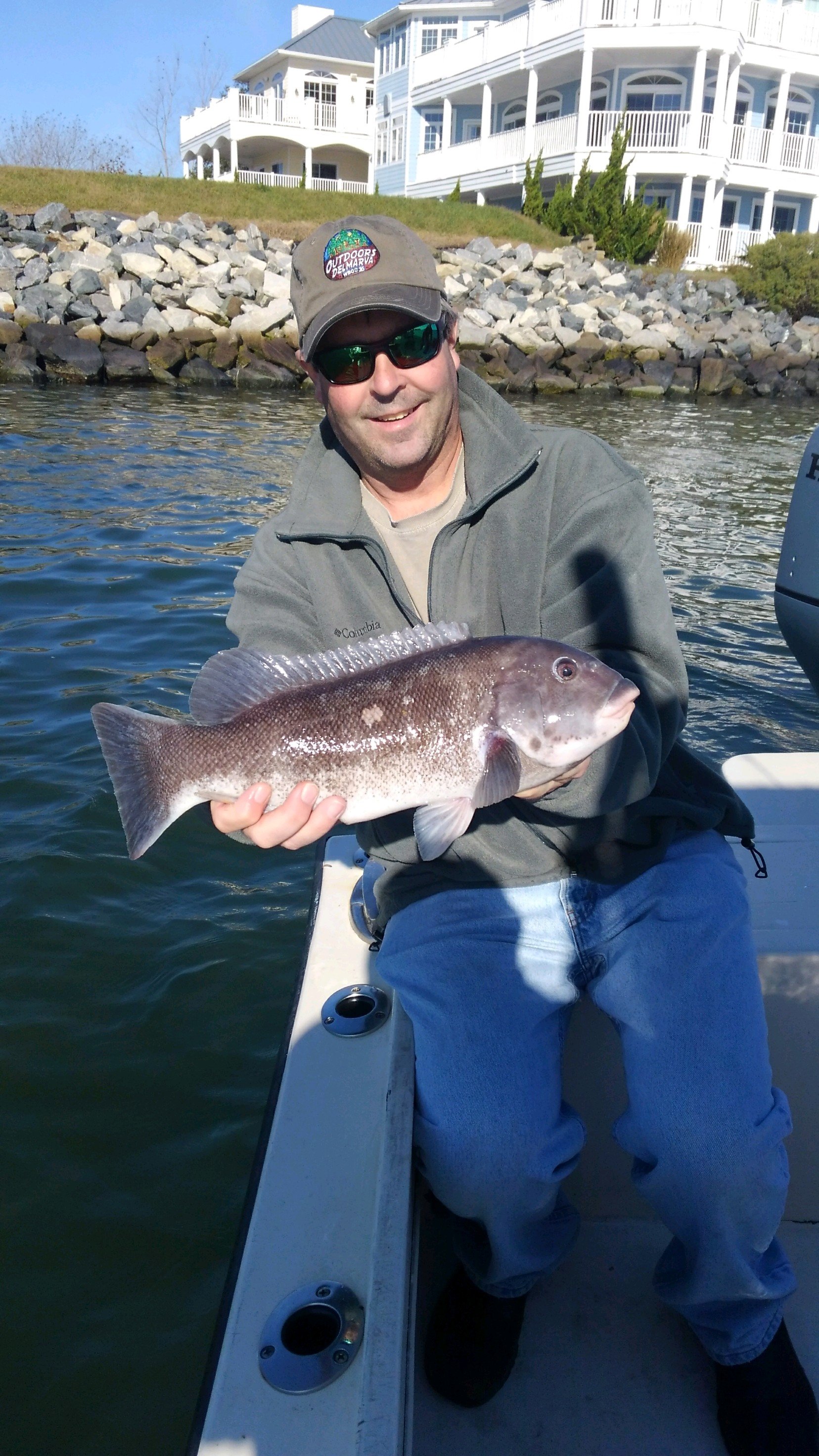 It was a pretty decent weather day before it gets down right snotty for a few days starting tomorrow. It looks like we’ve got a nor’easter brewing up for at least tomorrow with strong winds and plenty of rain in the forecast. The wind blew a little today, but it was sunny and warm enough that the party boat fleet was able to get out for some fishing and there were some anglers on the bay trying their luck with the tautog, flounder and rockfish. Captain Jeff Coats of Pitboss Fishing lucked into some good weather as he tied the knot with his best friend Karen. I’m looking forward to writing her in the fishing report as Captain Jeff’s wife for the future.