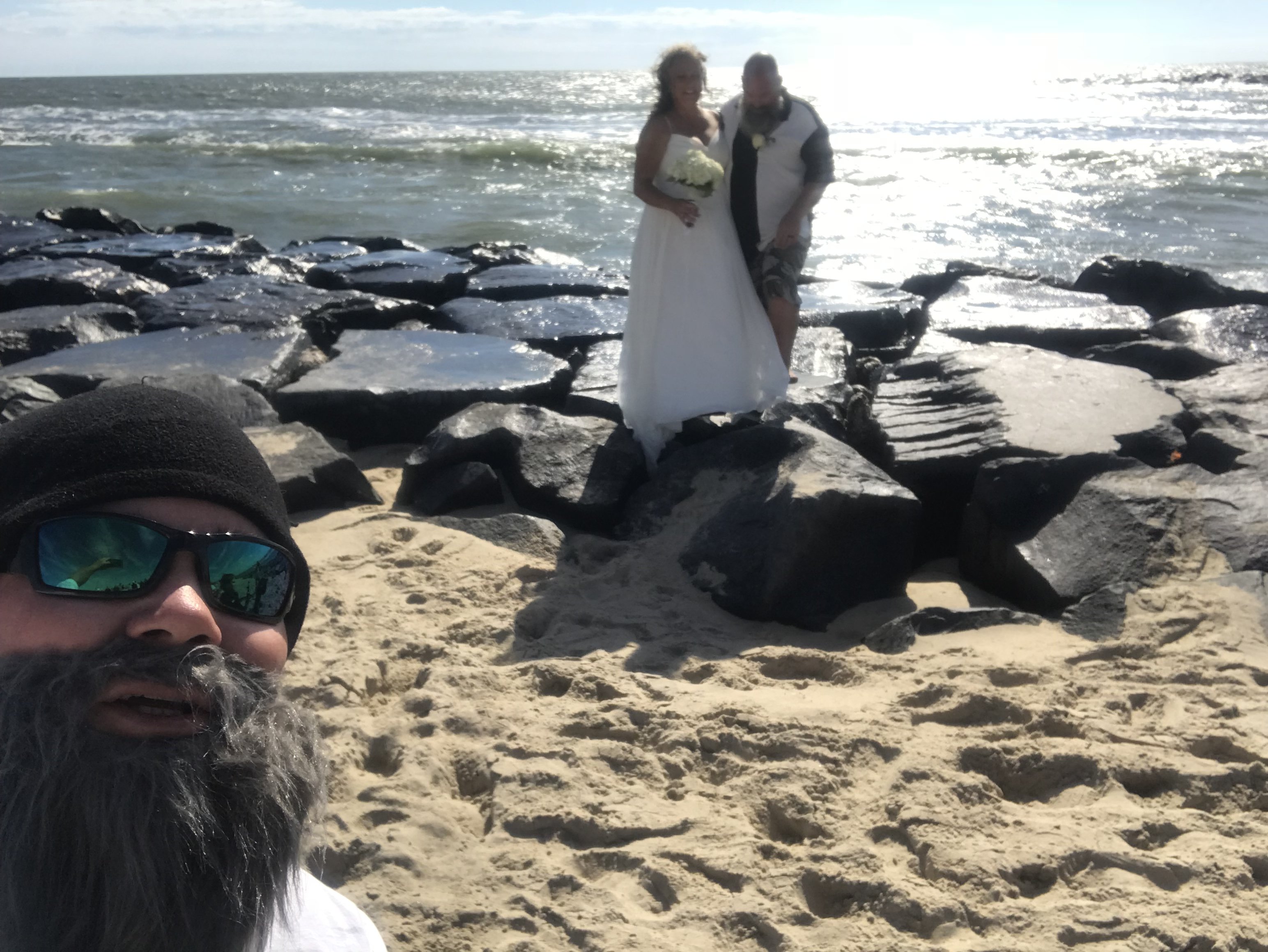 I had the pleasure of attending the laid back beach wedding of my good friend Captain Jeff Coats of Pitboss Fishing has he married his best friend Karen Langford Kelly. Captain Franky Pettolina of the Last Call officiated the ceremony on the beach in the inlet and Captain Jeff and Karen exchanged vows. Dave Messick of Hooked on OC was the official photographer and videographer and my son Ryan was the official Facebook Live videographer. The ceremony was followed by a reception/party at Harborside Bar and Grill and everyone had a great time. Congratulations to Captain Jeff and Karen on their wedding!!