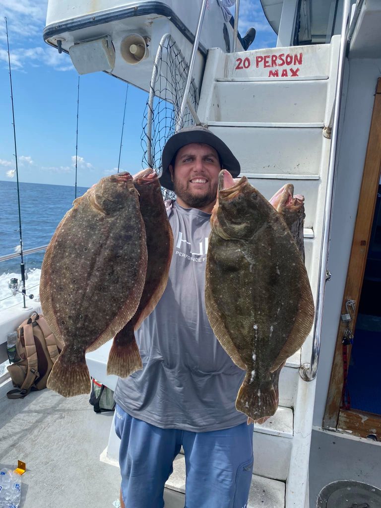 Captain Chris Mizurak of the Angler found it a bit bumpy today, but he also found the fish. His anglers had good luck with some sea bass, mahi and flounder on today’s trip.