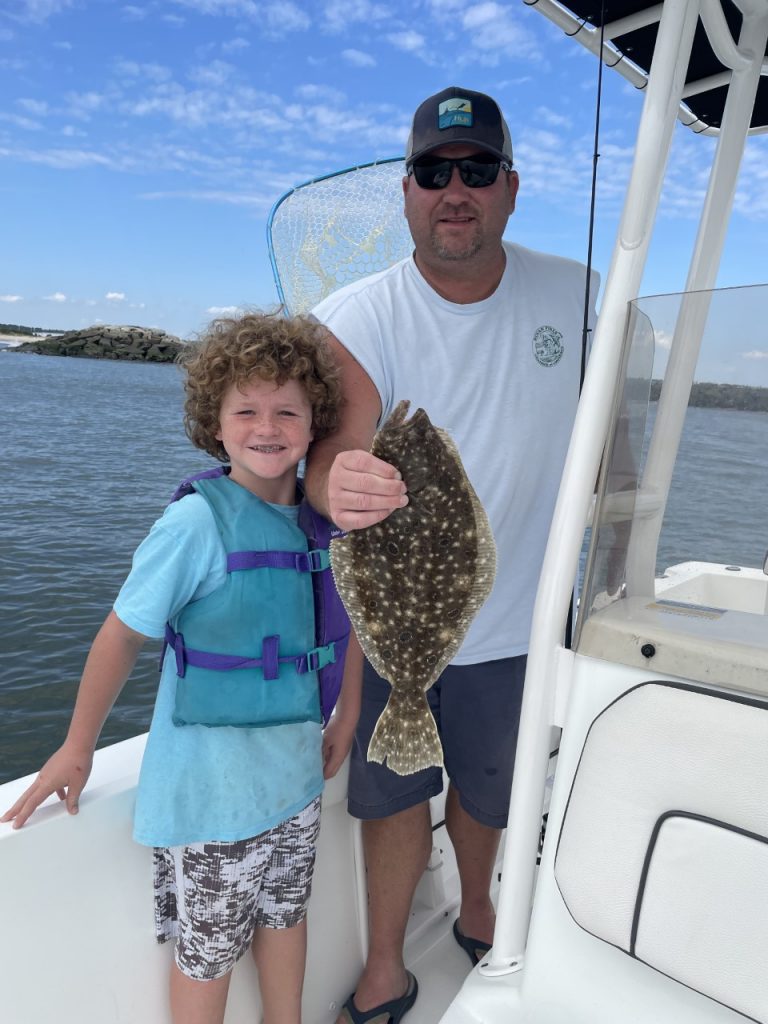 Dave Neumeyer was fishing the south side of the south jetty with his son Chase when he landed this 17 1/2″ keeper flounder.