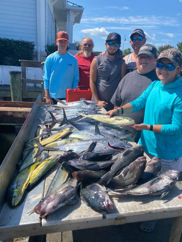 The crew of the Ocean City Girl had another nice day in the ocean today putting a pile of mahi, sea bass and small albacore in the boat.