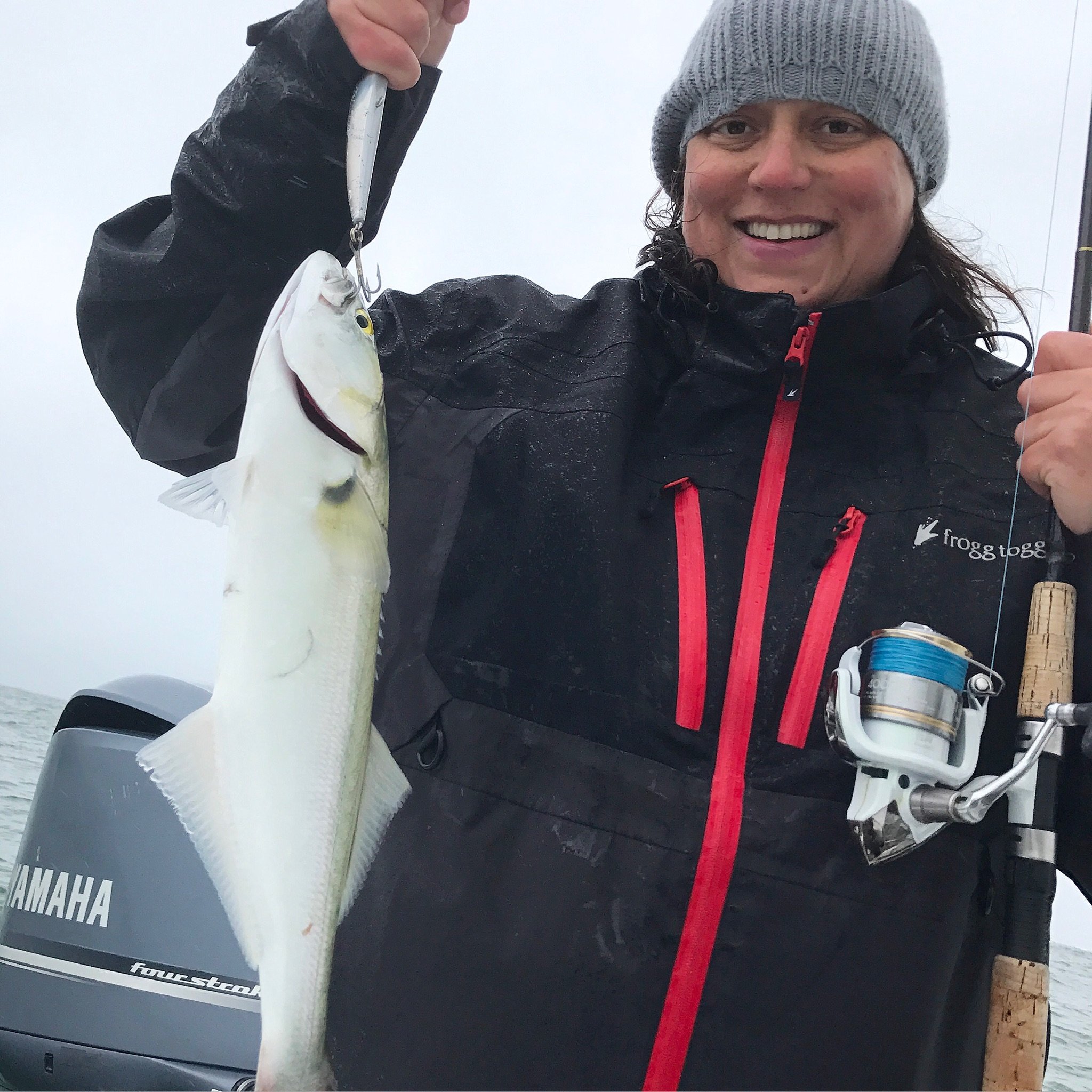 Captain Jeff Coats of Pitboss Fishing had the Bad Influence out for two trips today, both on the south jetty. Captain Jeff said the northeast wind made it “nautical”, but fun and productive. The first trip was a 50/50 mix of about 35 rockfish and bluefish that ate a little bit of everything.