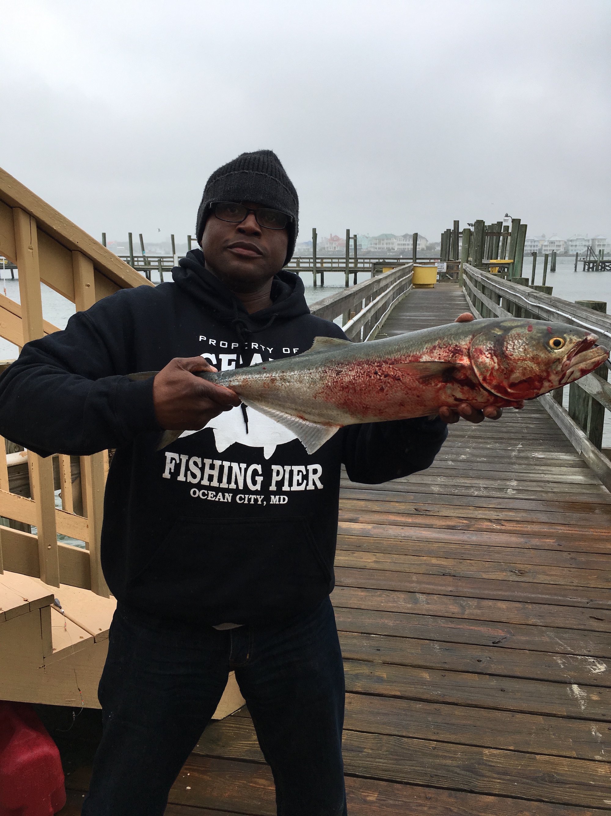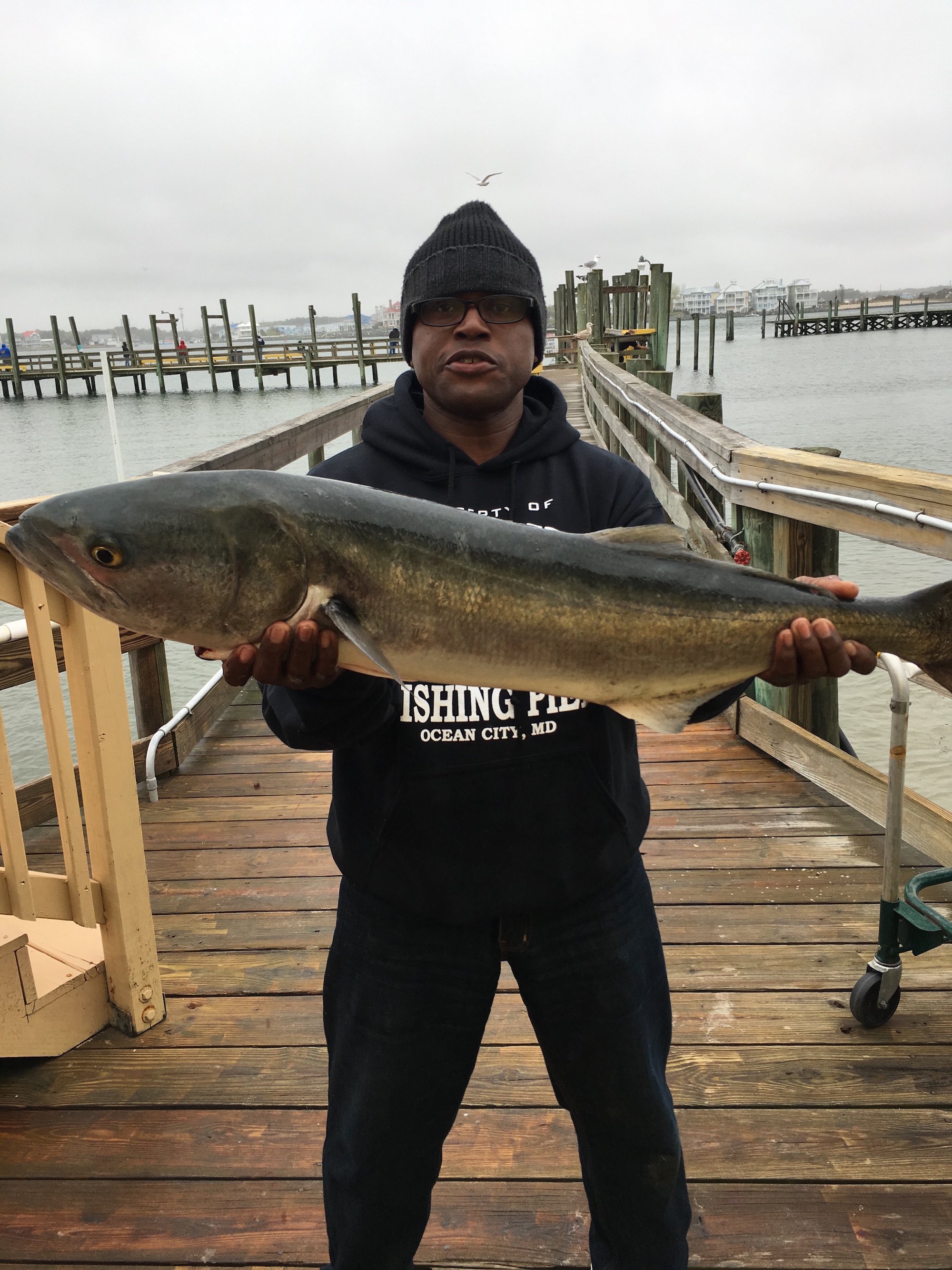 Luke from Mt. Airy with a nice one on the pier’s fresh bunker.