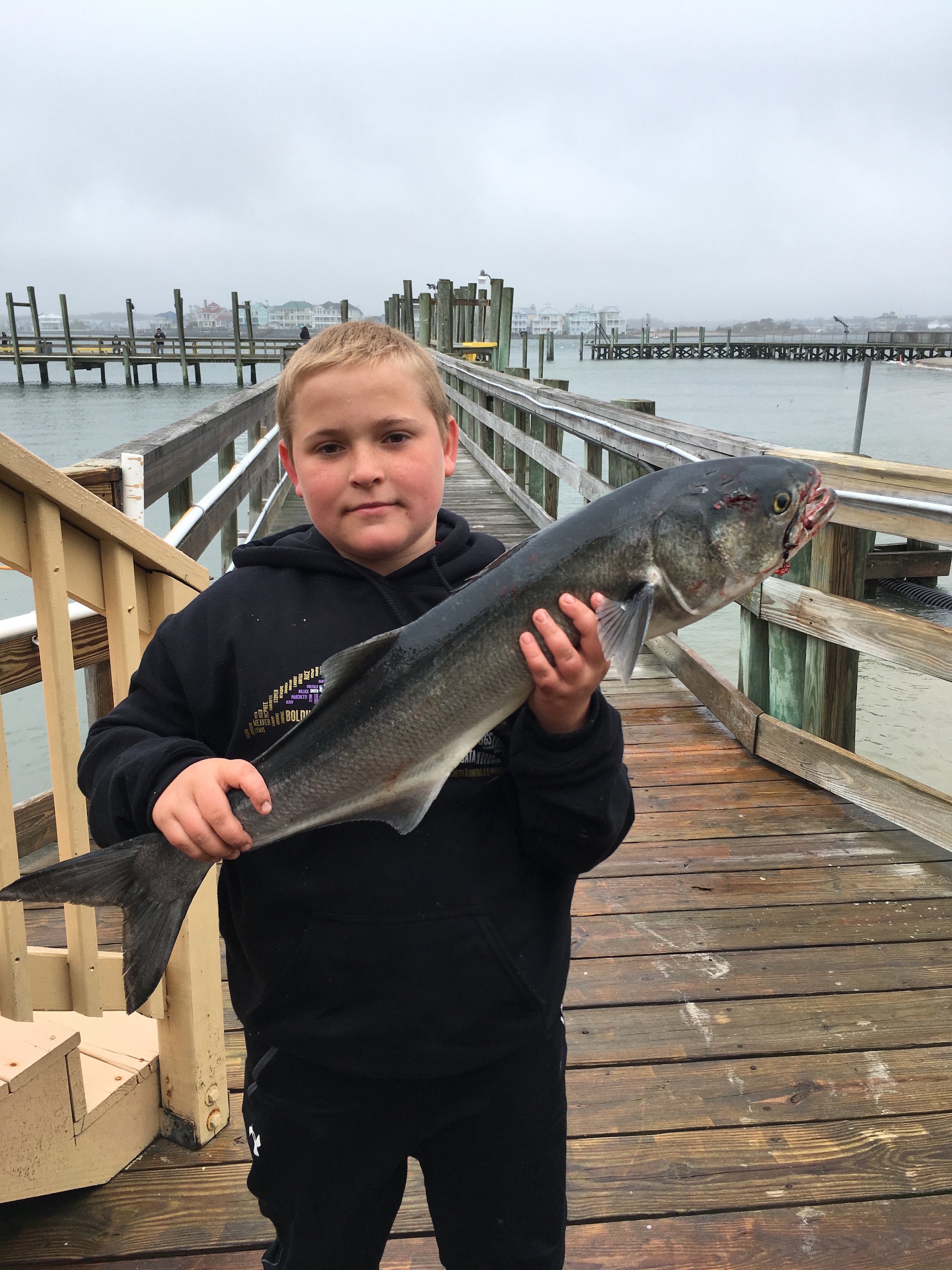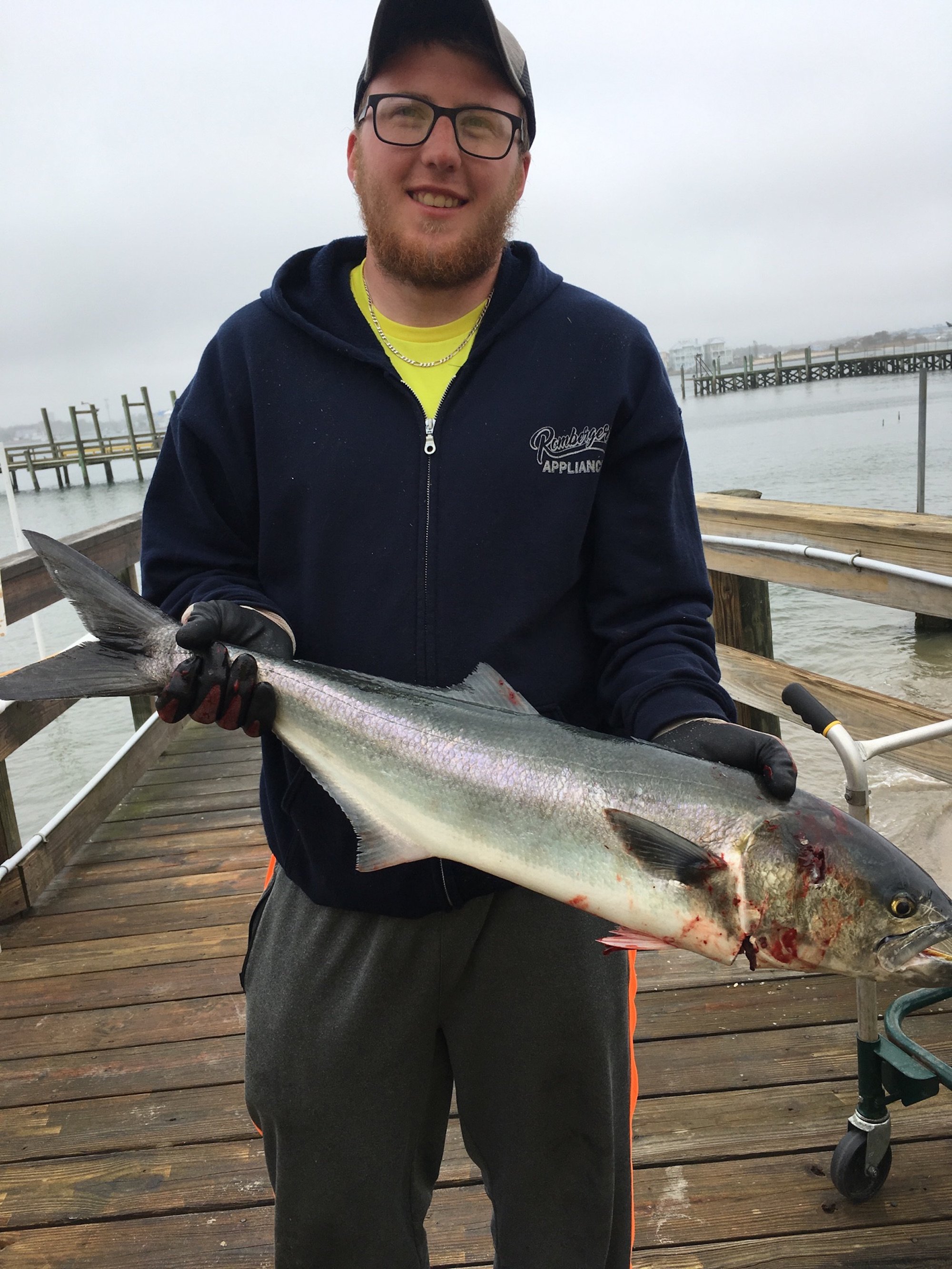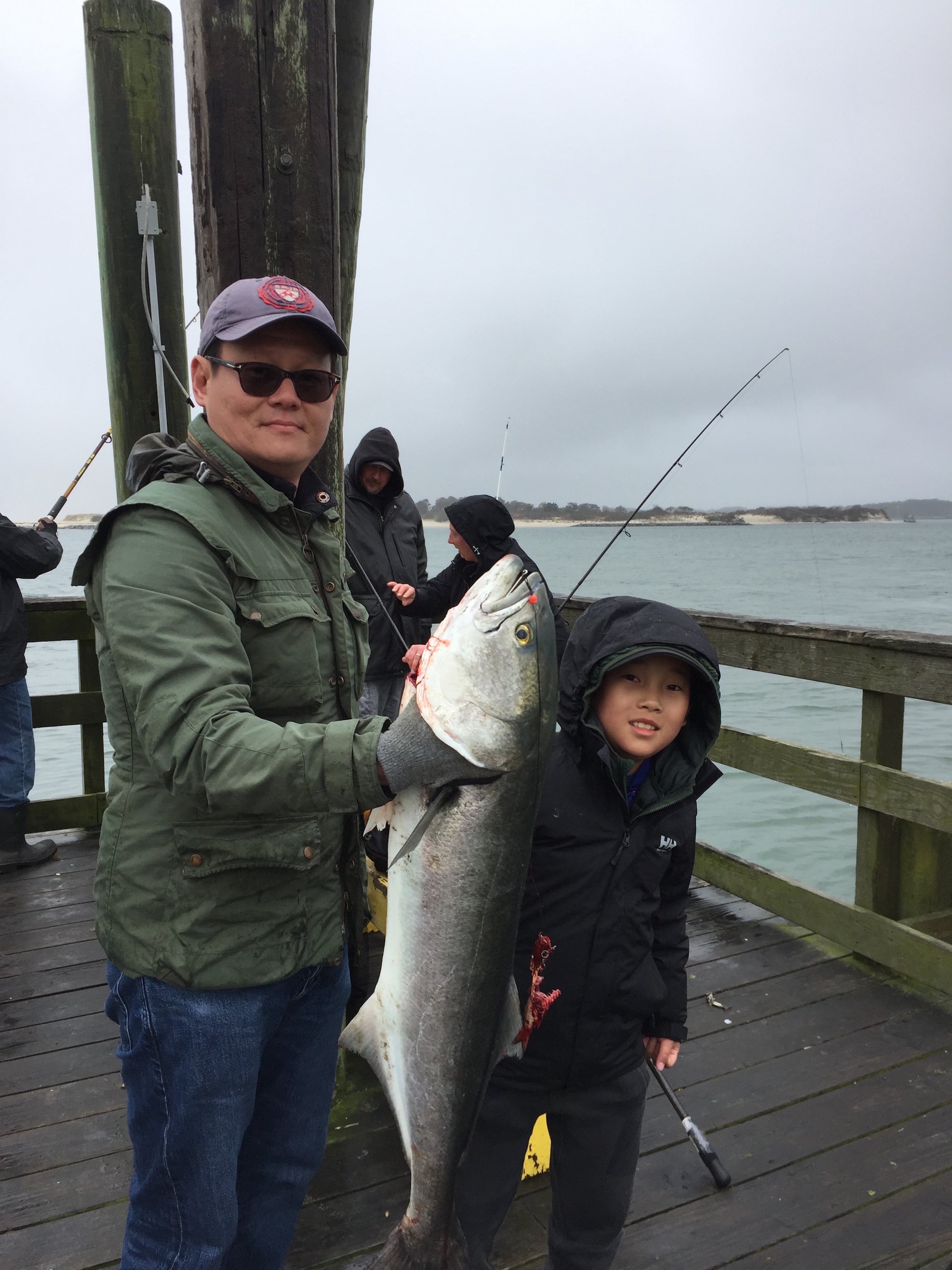 Howard and his son landed this big bluefish at the south end of the pier on the inlet.