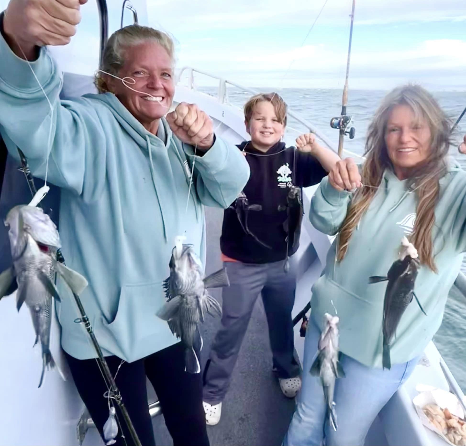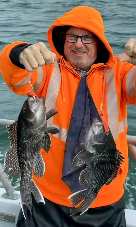 Captain Monty Hawkins of the Morning Star had a good trip to the rip today with about 1/2 of his anglers seeing limits of sea bass around the rail.