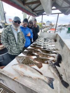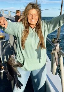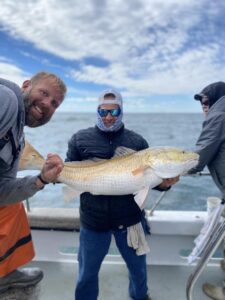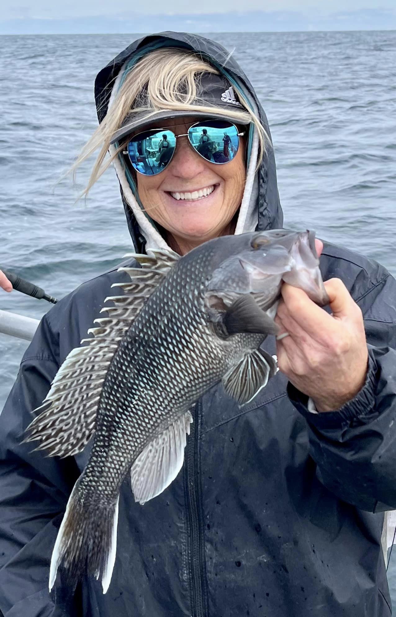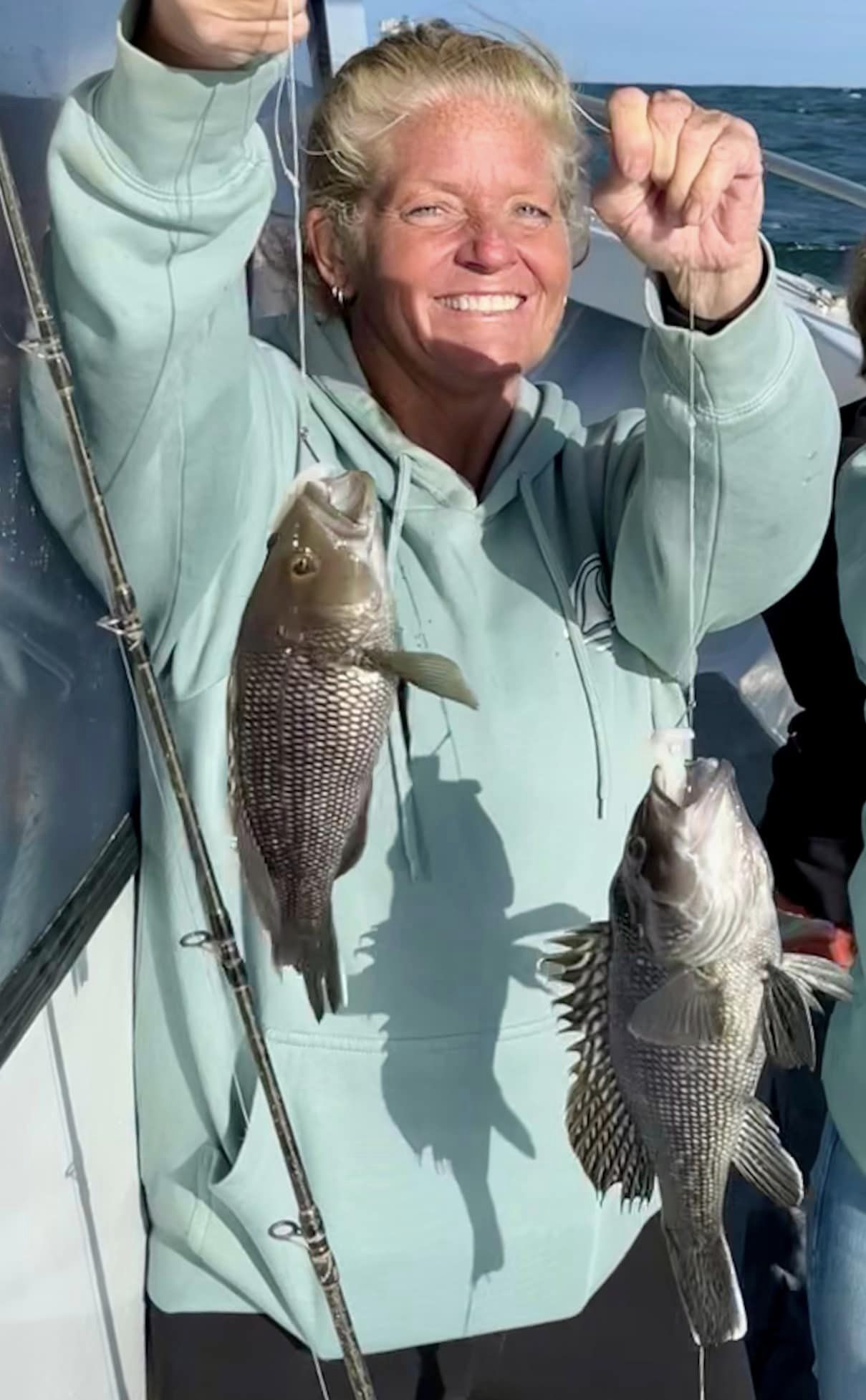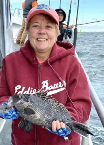 Captain Chris Mizurak of the Angler was stuck inshore today thanks to the wind, but he did still put his anglers on some good fishing with sea bass and a few big red drum that were caught and released.