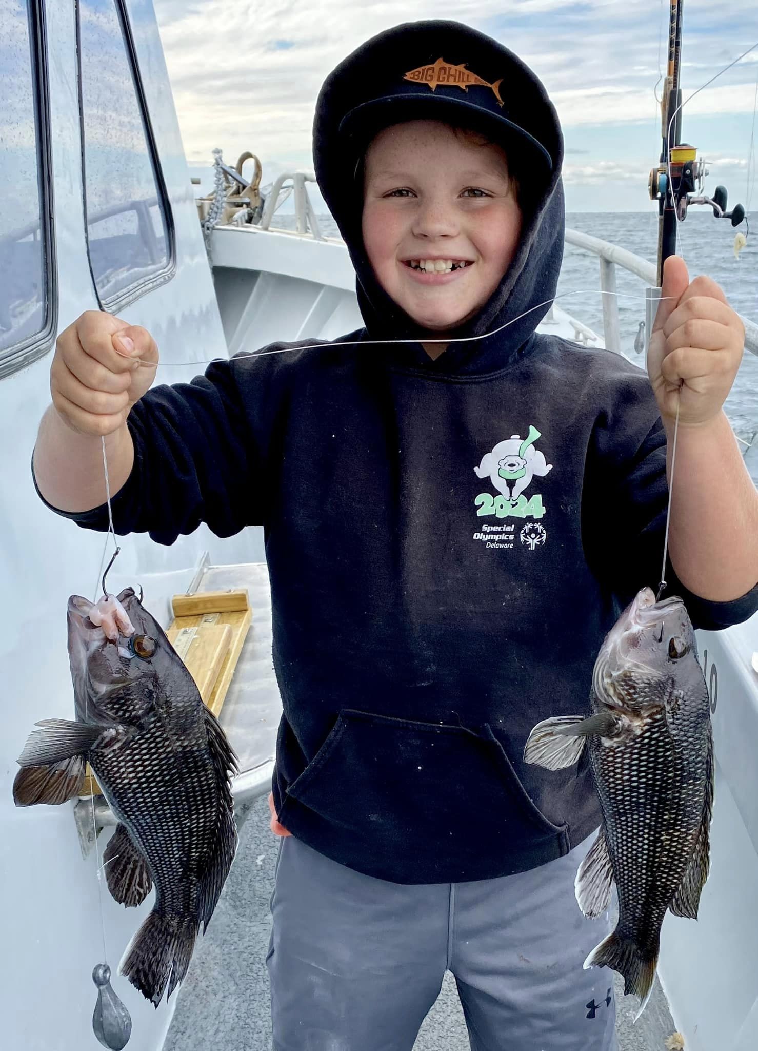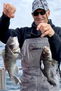 Captain Dave Caffrey of On the Run Charters had a crazy good day in the OC Inlet today! Captain Dave broke in some of his new Deadly Tackle spinning rods on red drum, flounder and sheepshead. The crew ended up with 12 sheepshead, 2 tautog, 8 flounder, a slot red drum a few rock and released “lord knows how many.” The biggest flounder of the day ate a Deadly Tackle tog / bottom jig baited with a sand flea.