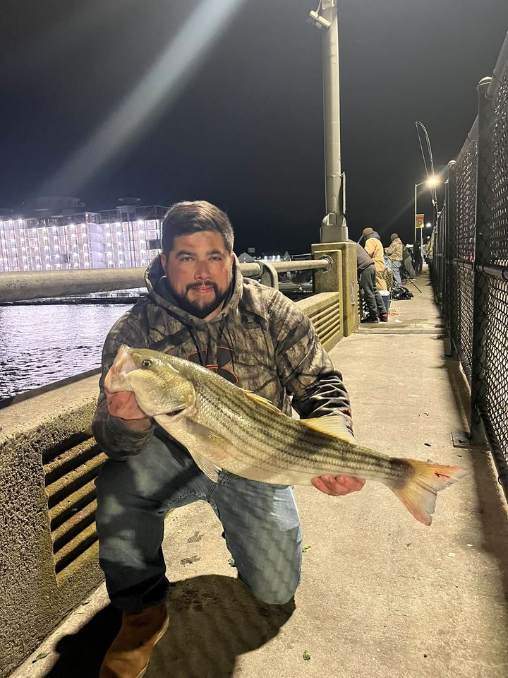 Ryan Ellerman fished the route 50 bridge last night where he tricked this 29″ keeper rockfish into the net.