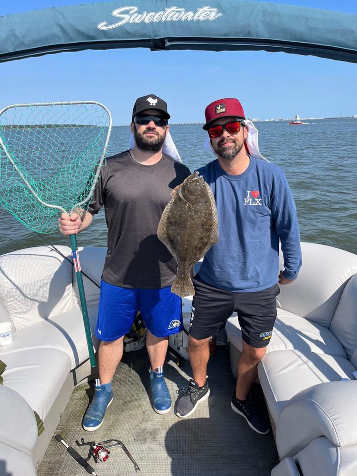 Kyle Bancaro caught this very nice 22″ flounder in the Thorofare this afternoon with net man Chris Stricklan.