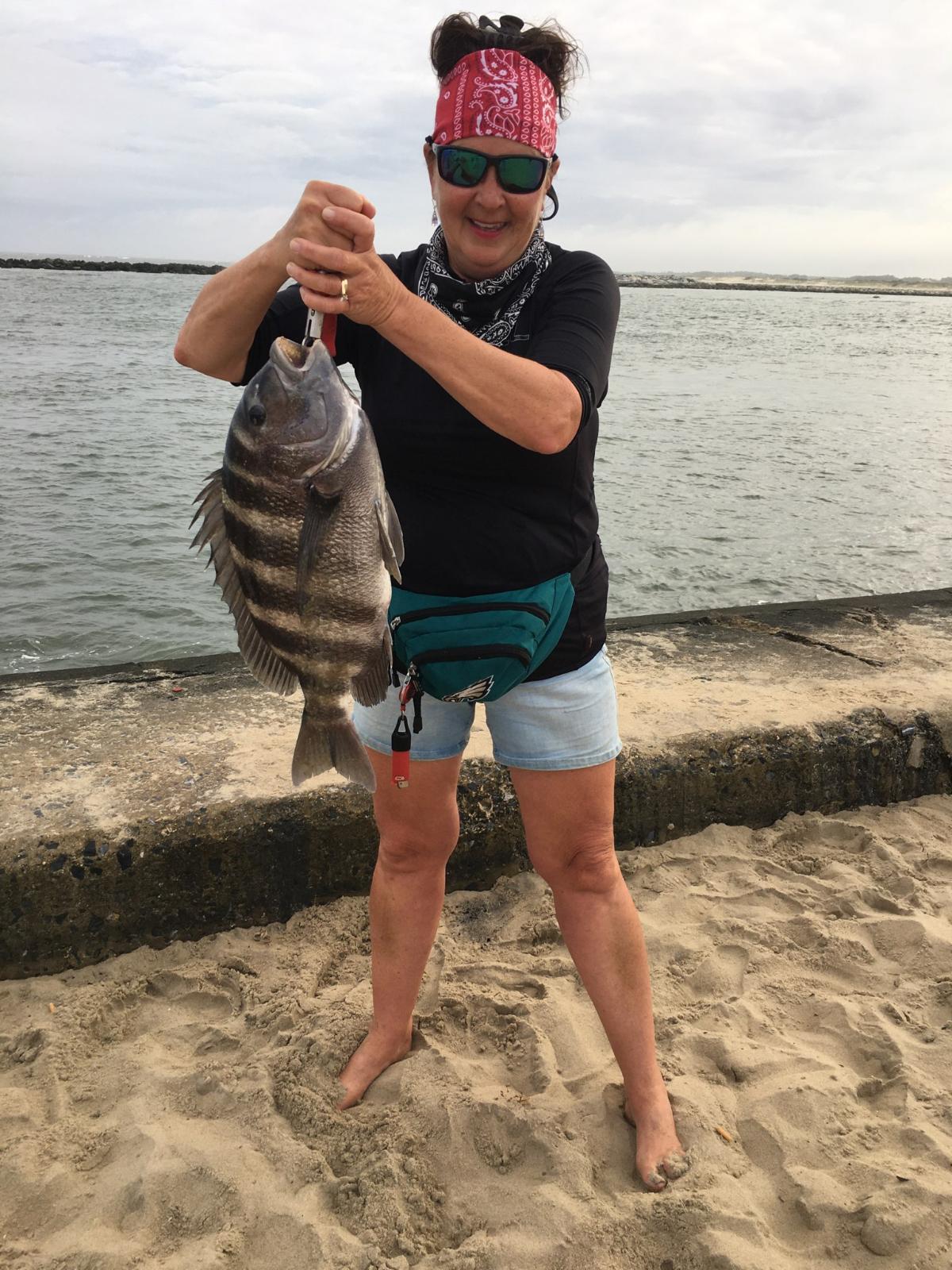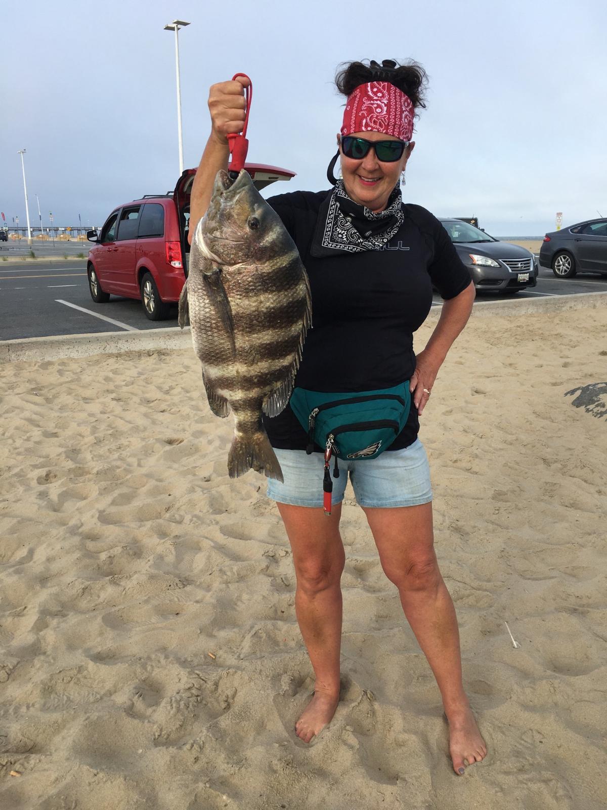 Chrissie the “Sheepshead Slayer” continues her assault on the sheepshead of the OC inlet with two nice fish from tonight. The first was a nice 25″ fish followed by another good one at 23 1/2″.
