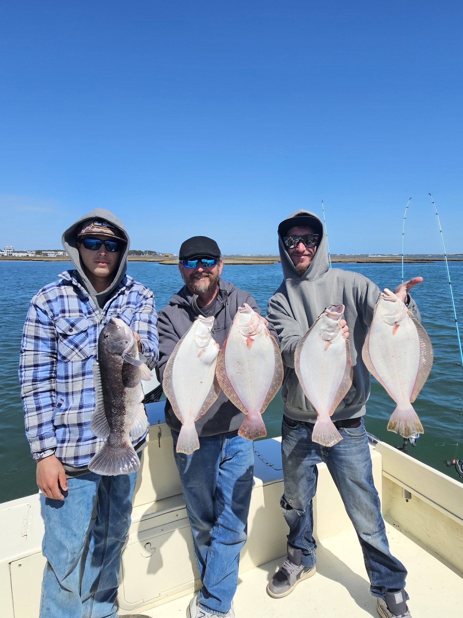 It was a little chilly on the water today, but with lightish winds it was a great day to get out there and do some fishing. I headed out to the south bay this afternoon after church and had a great time catching up some flounder. I hadn’t caught a flounder in Ocean City yet in 2026, and today I caught not only my first fish and my first keeper, but also caught four more keeper sized fish. I used Deadly Doubles with Gulp and shiners and had fish of 17″, 17″, 18″ and 18″ that went in the cooler and another keeper sized fish of 16.5″ that I released. The water is clean right now and the Thorofare and the channel behind Assateague Island are holding some fish.