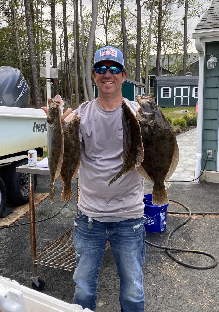 Mikey Johnston had his first limit of four flounder this year today after trolling the Thorofare. Mike had fish up to 18.5″ and released three more keeper sized fish.