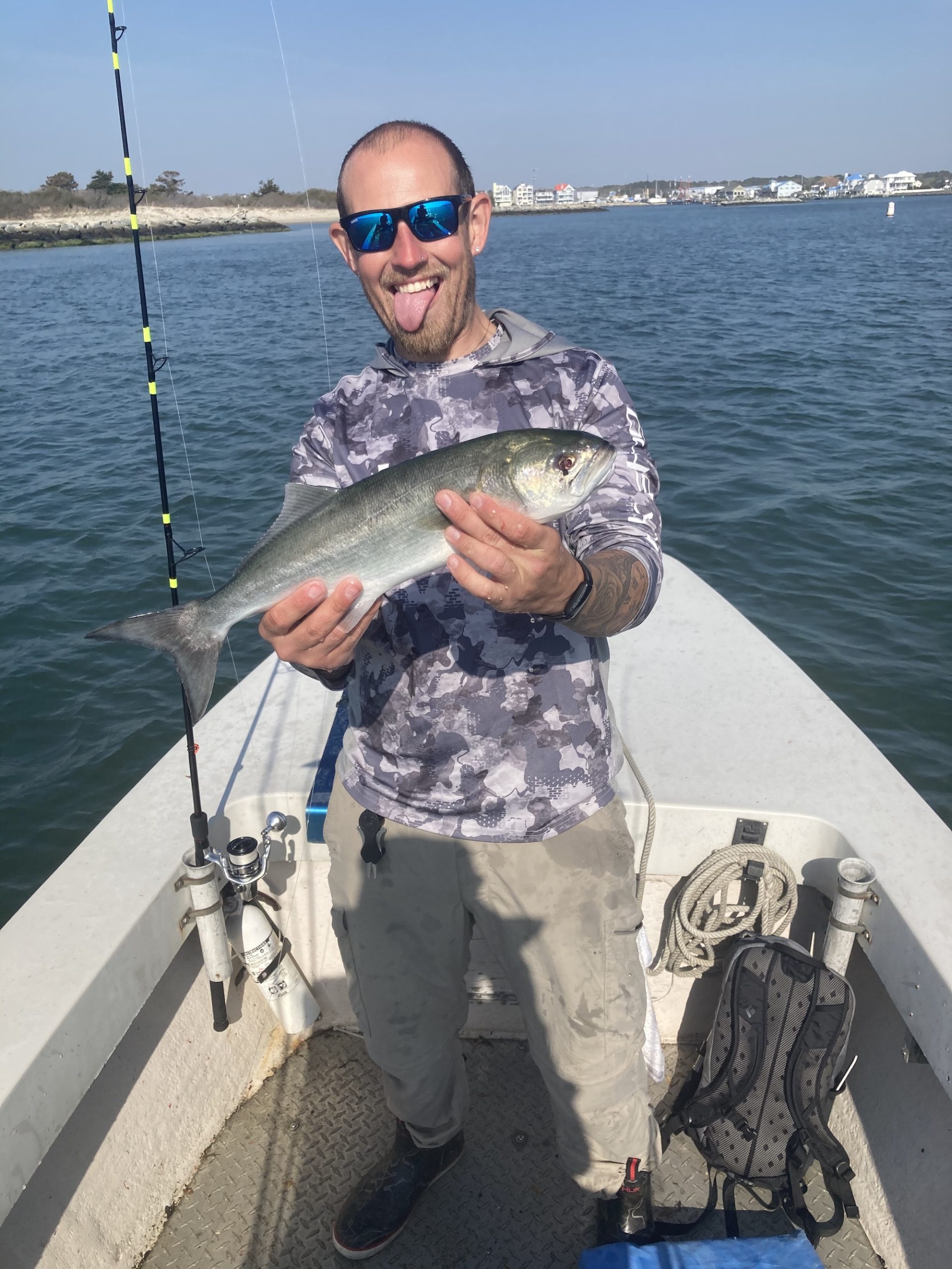 Big Bird Cropper had a weird one today when he caught this legal tautog while casting a Roy Rig. Morgan Mericle, who was fishing with Bird today, caught what we think was the first bluefish of the season.
