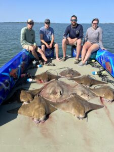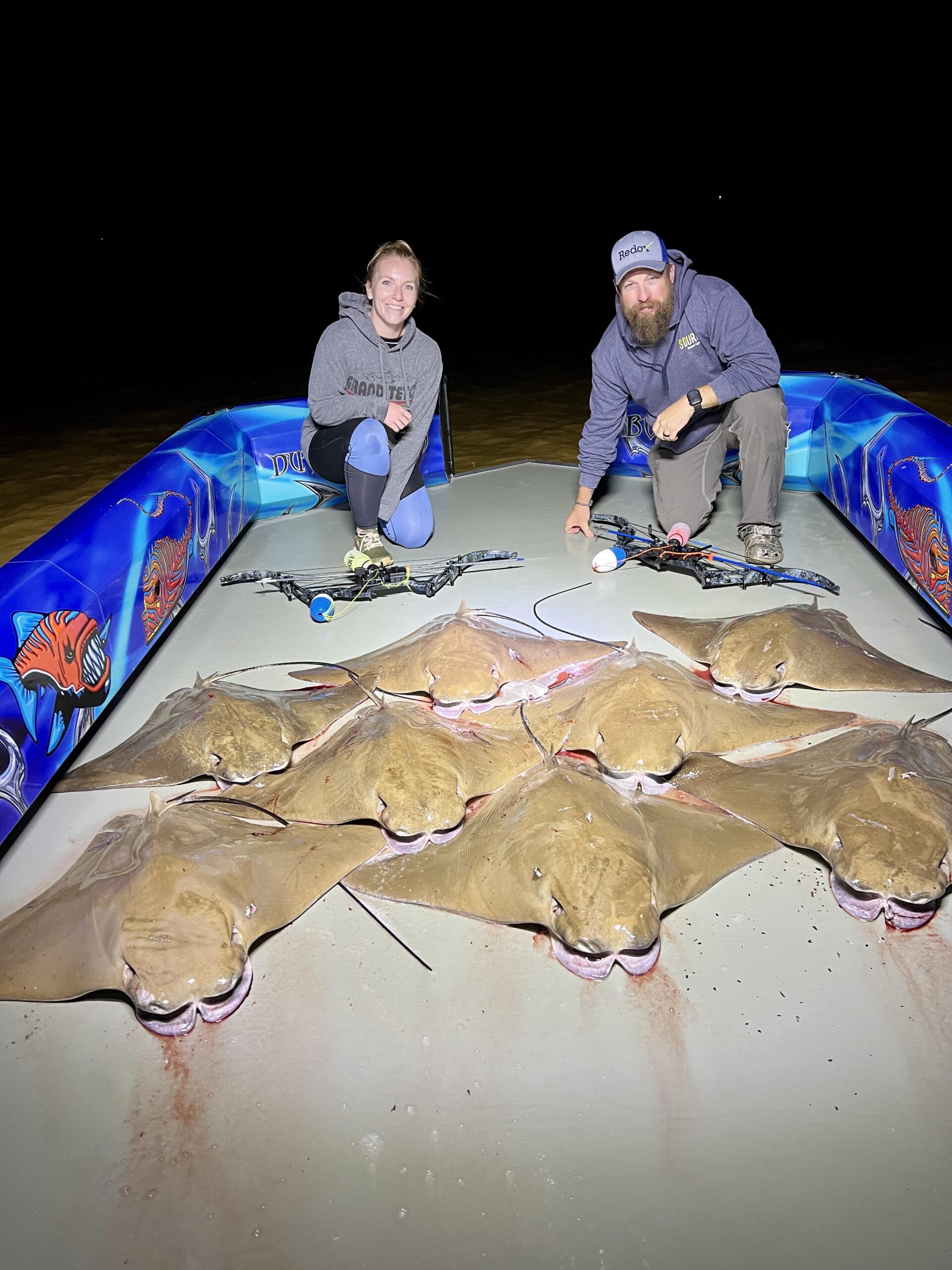 Captain Marc Spagnola of Dusk to Dawn Bowfishing has had some great shooting the past few trips with snakeheads, rays and gar at night and rays during the days.