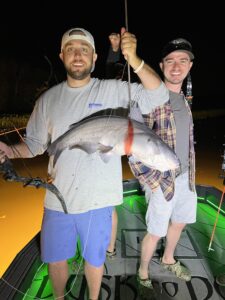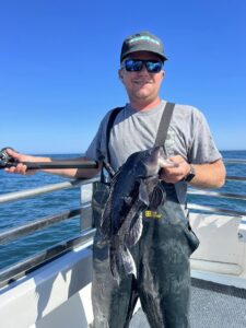Morgan Mericle didn’t do any damage in the Blues for D.U. Tournament, but while he was looking for that winning “chopper” he did land this jumbo 40″ rockfish at the south jetty that was released.