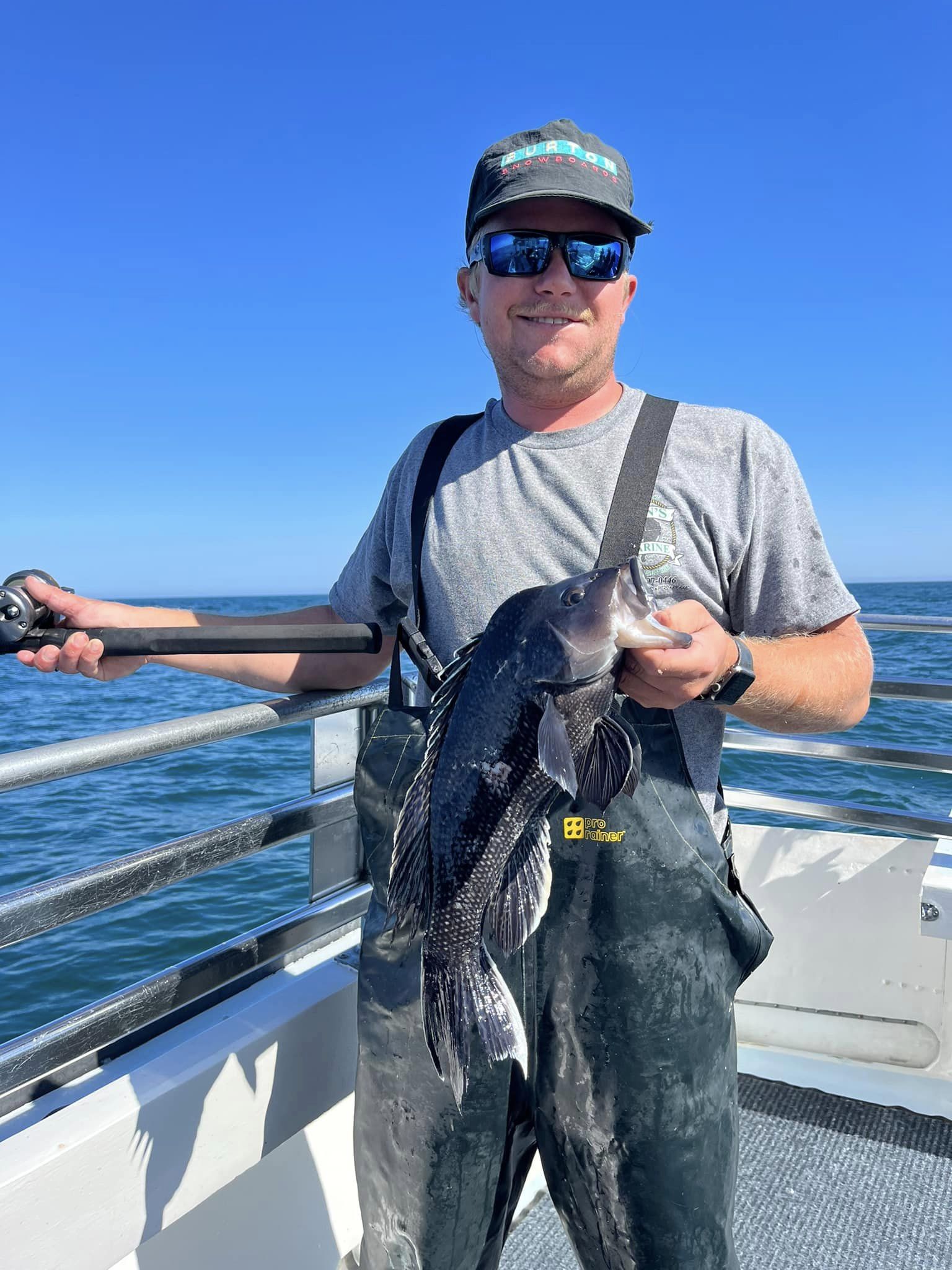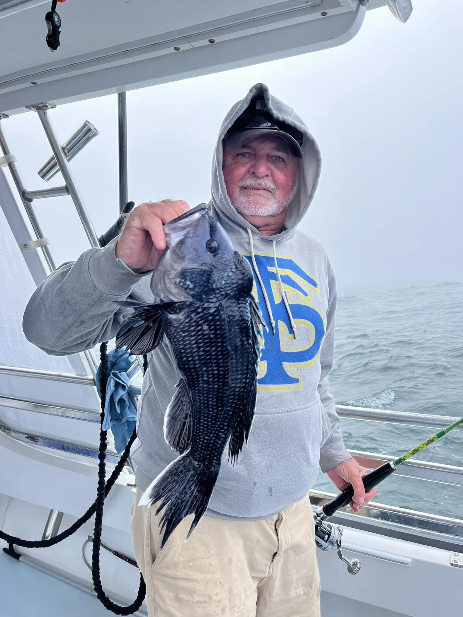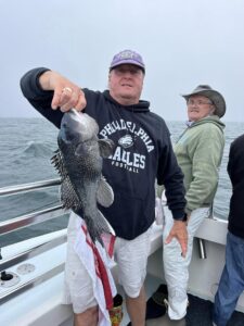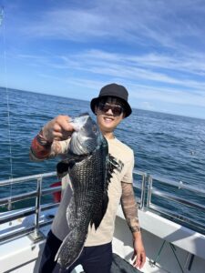 Captain Kane Bounds of the Fish Bound reported sea bass limits on both trips today with some serious knotheads coming over the rail.