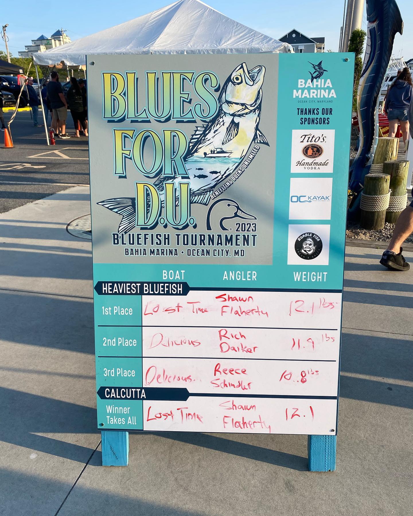 Today turned into a really nice day after the clouds, wind and cool temps left the area. There weren’t a ton of fish caught, but there were some good ones that came with a couple of leader board changes in the Blues for D.U. Tournament at Bahia Marina.
