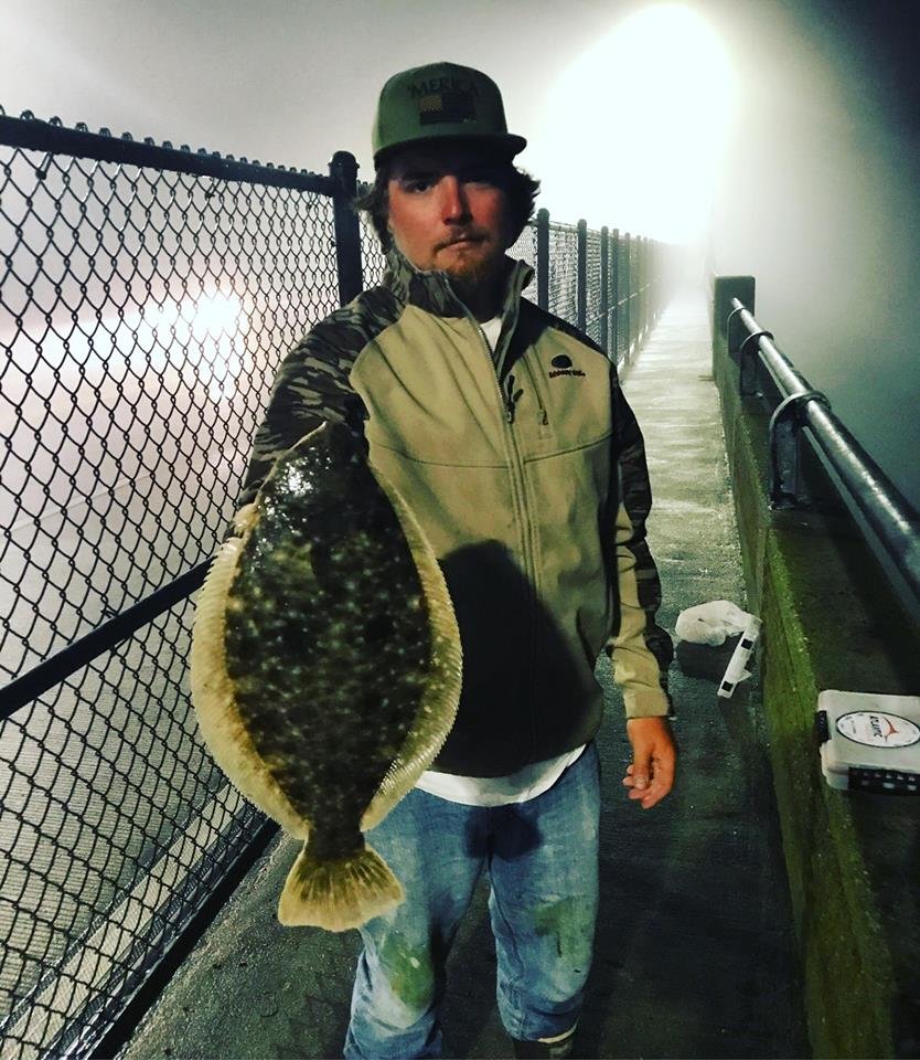 Last week Cody Smith caught a flounder under unusual circumstances. Cody was fishing the route 50 bridge at night with a spec rig when this nice keeper flounder decided to come up in the lights and hit it on top water. Not unheard of, but rare for flounder to bite at night up top.