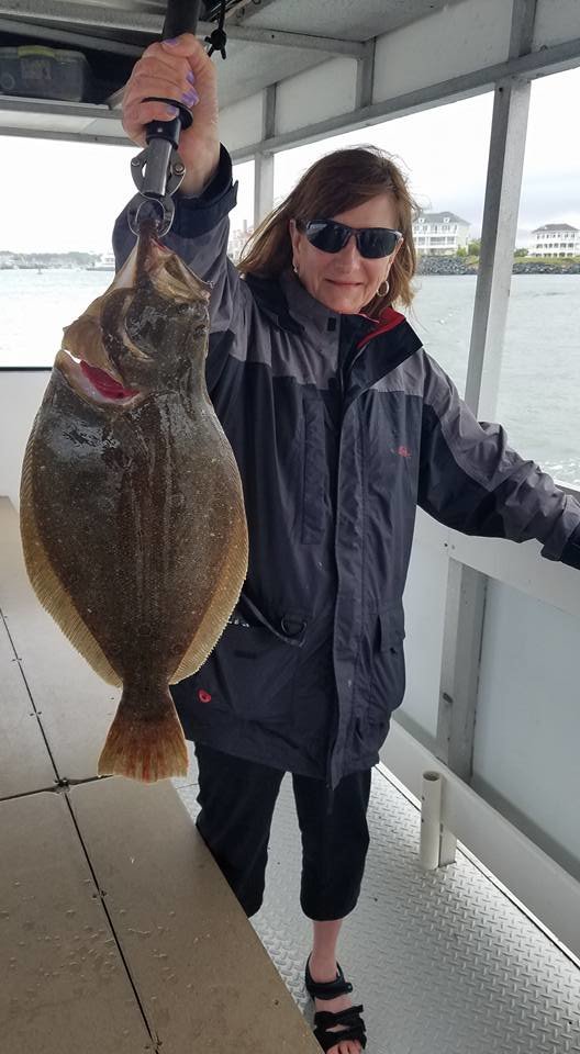 The Happy Hooker bay party boat had a few trips today with some good luck. The crew had scattered throwback flounder and at least one bluefish blitz. Marianne caught the only keeper of the day, but it was a good one at 22″.