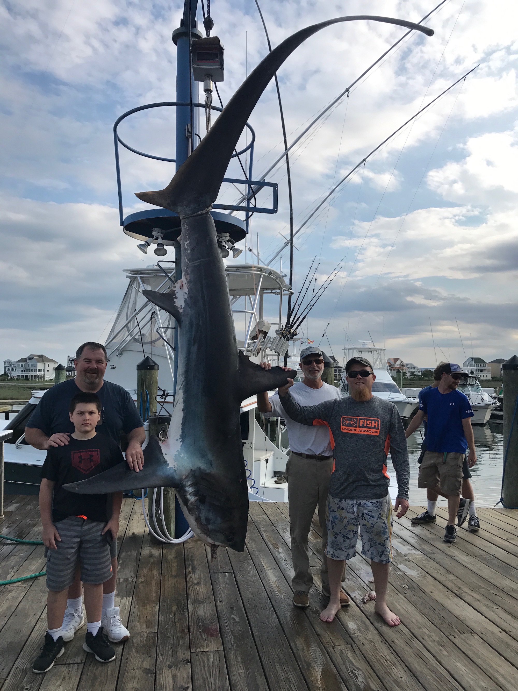 The charter boat Wrecker out of the Ocean City Fishing Center with Captain Jeremy Blunt spent the day shark fishing in the ocean and had a great day. Captain Jeremy put his crew on five blue shark releases, two mako releases and this nice 196 pound mako that ended up on the deck.