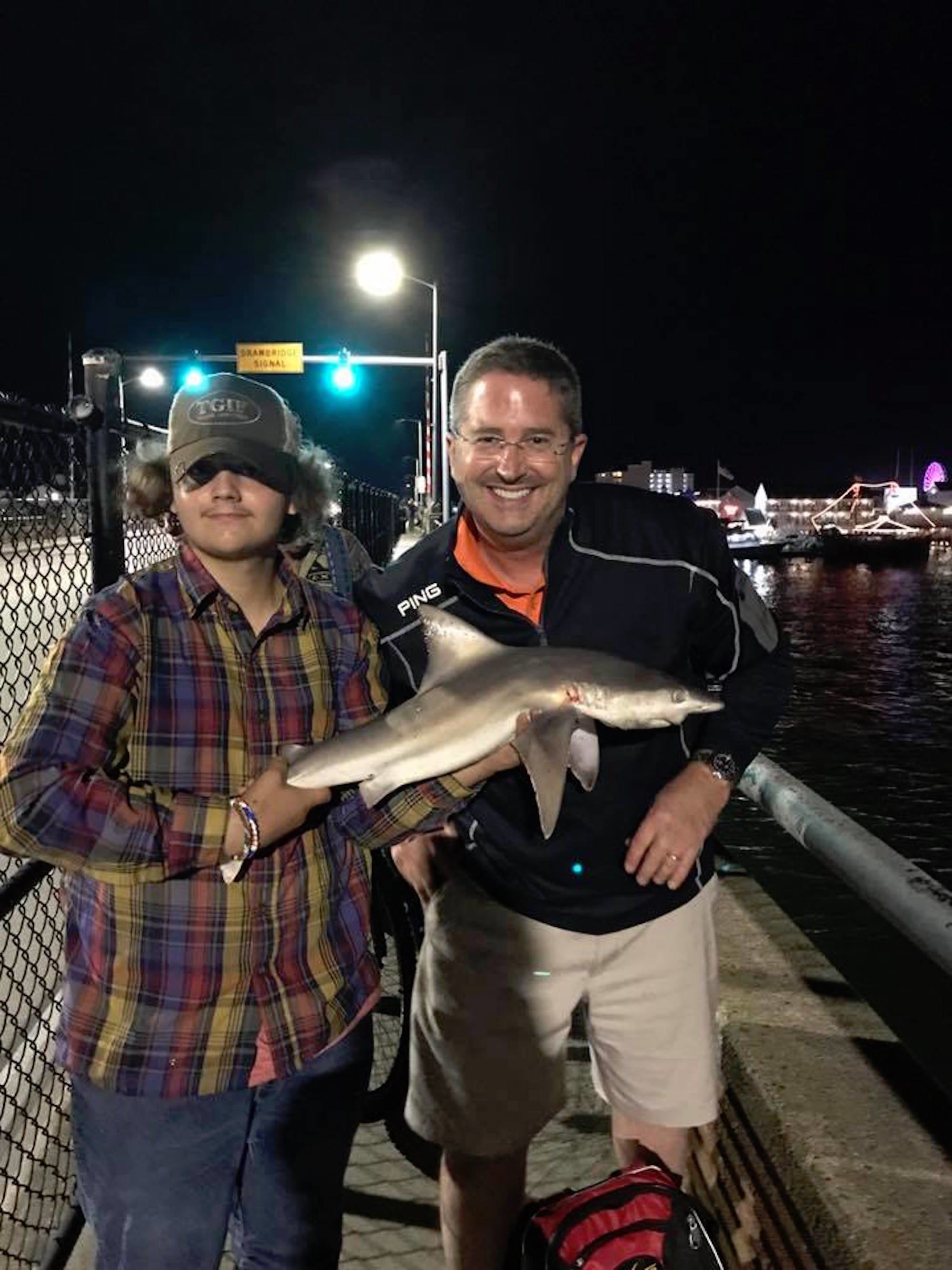 A Facebook submission from Kathy Giovannetti included the following photos of Ricky who caught a nice 36″ rockfish from the route 50 bridge and Stephen and Chris who caught a small shark.