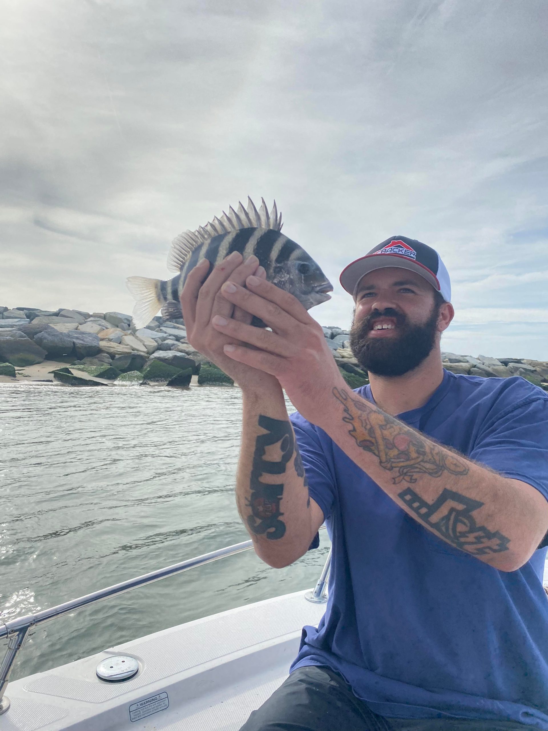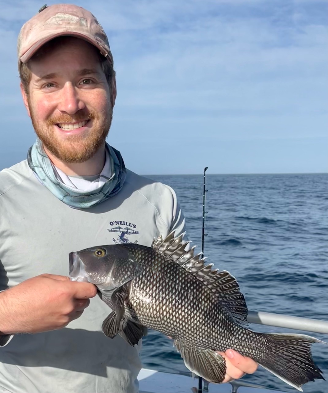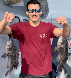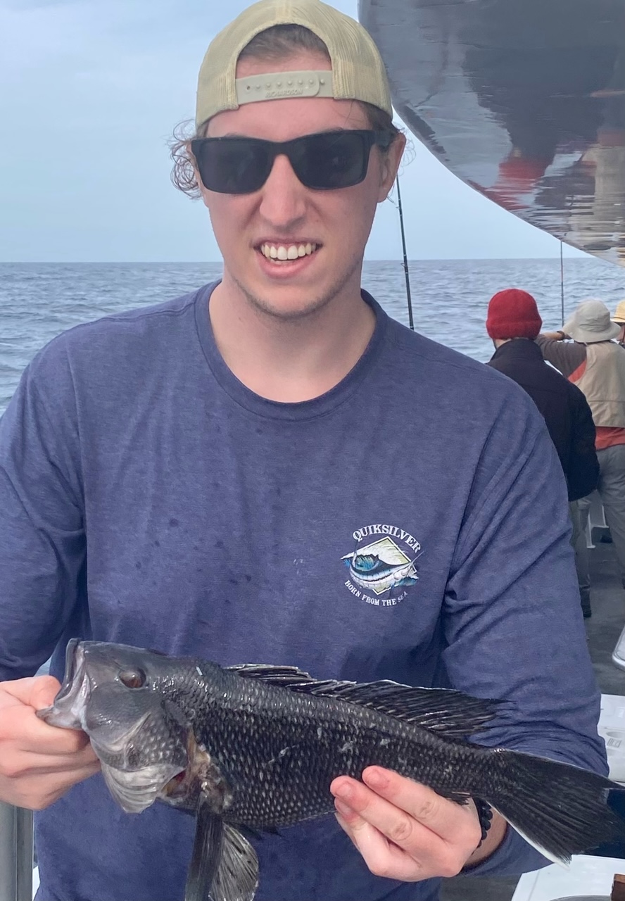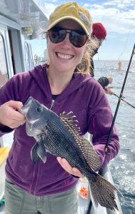 We spent the day looking for a variety of species – fished different bottoms with different baits. Sea bass limits weren’t the goal this trip – had a few anyway with Kyle, Hurricane, and then my friend Jamie boxing out first. By days end the SSU gang were throwing back keepers—a different sort of ‘limit’ was reached I suppose.