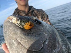 There’s a reason we stopped just calling our Deadly Tackle tog jigs “tog jigs” and started calling them “tog & bottom jigs” and it’s because they catch way more than just tog. So far we have reported of mostly tautog, but also sea bass, flounder, triggerfish, oyster toads and sheepshead. Today the “tog and bottom jigs” caught some big ones!