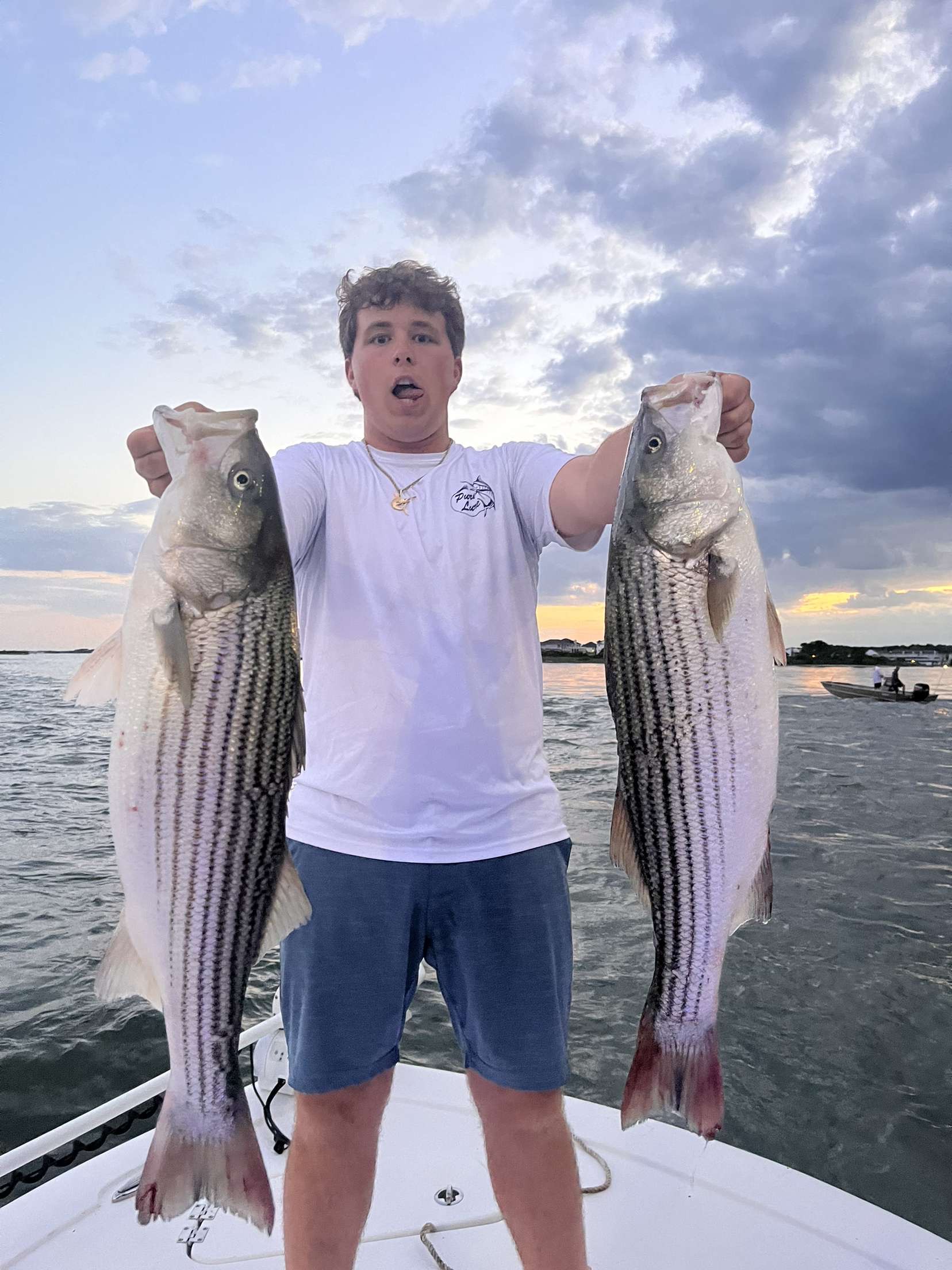 Owen West and Mike DePalma had an awesome day at the route 50 bridge catching their limit of legal rockfish and some big bluefish of 27” and 34”.